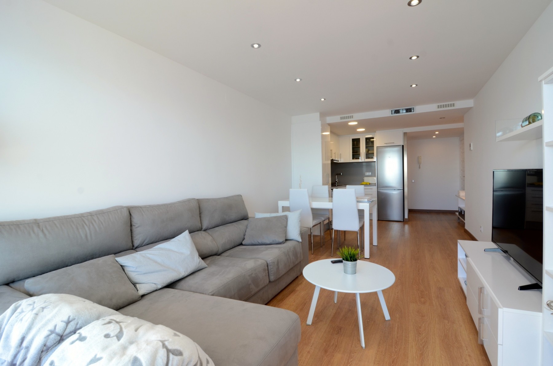 Die Wohnung ist mit Klimaanlage und Wärmepumpe klimatisiert und gewährleistet eine angenehme Temperatur zu jeder Jahreszeit. Sie verfügt über ein vollständiges Badezimmer mit Dusche und ist geschmackvoll möbliert, wobei ihre neue Einrichtung ihr einen eleganten und zeitgemäßen Touch verleiht.