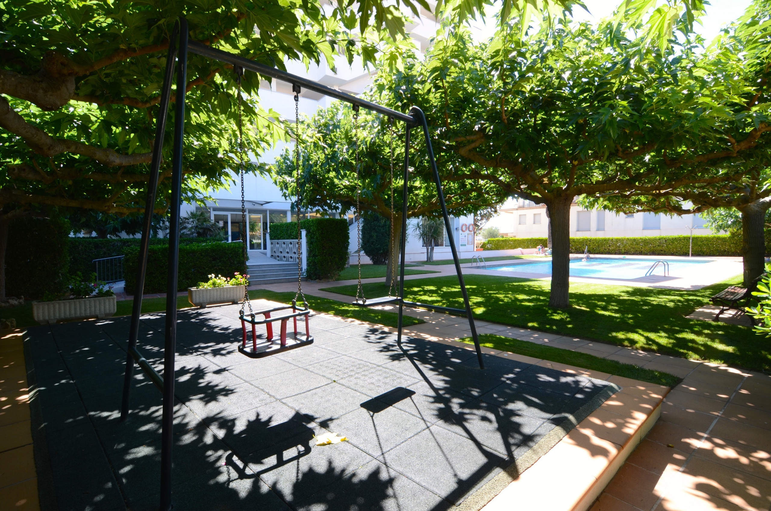 Diese Gemeinschaft hat einen Pool, einen großen Garten und Schaukeln für Kinder.
