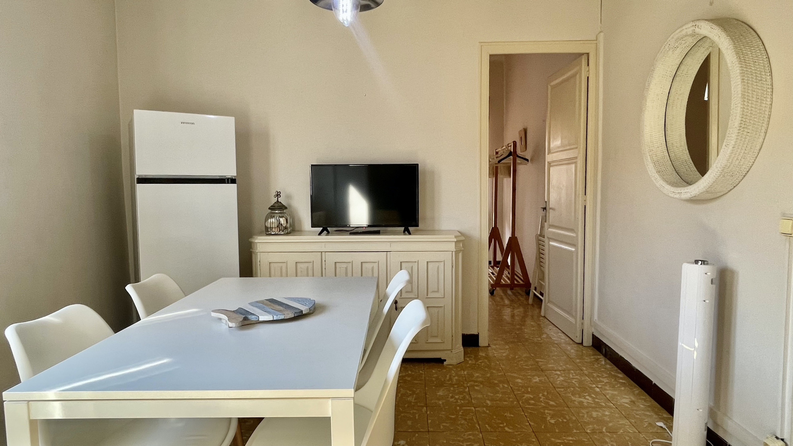 Gelegen in einem ersten Stock ohne Aufzug, verfügt die Wohnung über eine praktische Küche-Esszimmer, die mit allem Notwendigen für einen komfortablen Aufenthalt ausgestattet ist, ein vollständiges Badezimmer mit Dusche und zwei Doppelzimmern, die sowohl für Paare als auch für Familien ideal sind. Die Aufteilung ist funktional und darauf ausgelegt, komfortable und lichtdurchflutete Räume zu bieten.