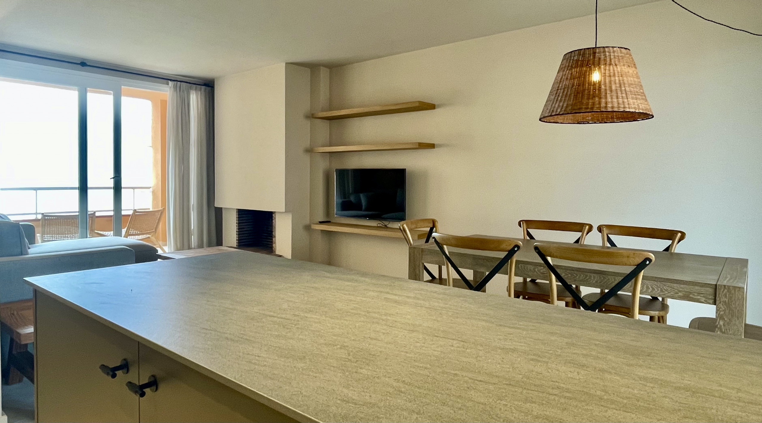 Entdecken Sie eine luxuriöse Wohnung am wunderschönen Strand von Pals! Diese renovierte Wohnung mit hochwertigen Materialien in der exklusiven Wohnanlage Golf Mar bietet ein unvergleichliches Urlaubserlebnis. Mit ihren 2 Terrassen können Sie atemberaubende Aussichten genießen, sei es auf das Meer oder auf den Pool der Anlage. Erwachen Sie jeden Morgen mit dem Glitzern der Sonne über dem Mittelmeer und entspannen Sie sich, während Sie die Ruhe des Pools genießen. Das offene Konzept verbindet die Küche mit dem großzügigen Ess- und Wohnbereich und schafft so einen gemütlichen und funktionalen Raum, um unvergessliche Momente zu teilen.