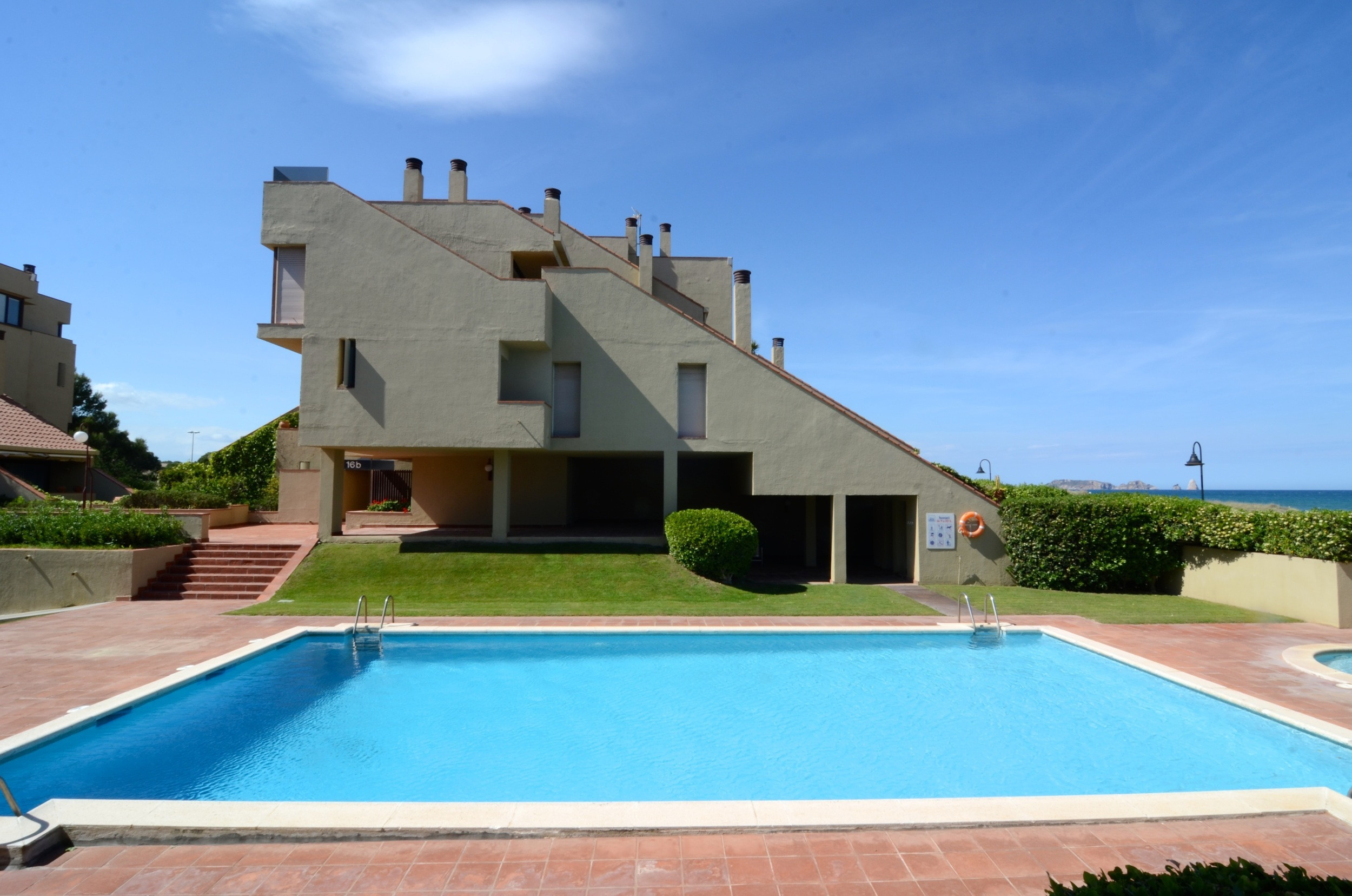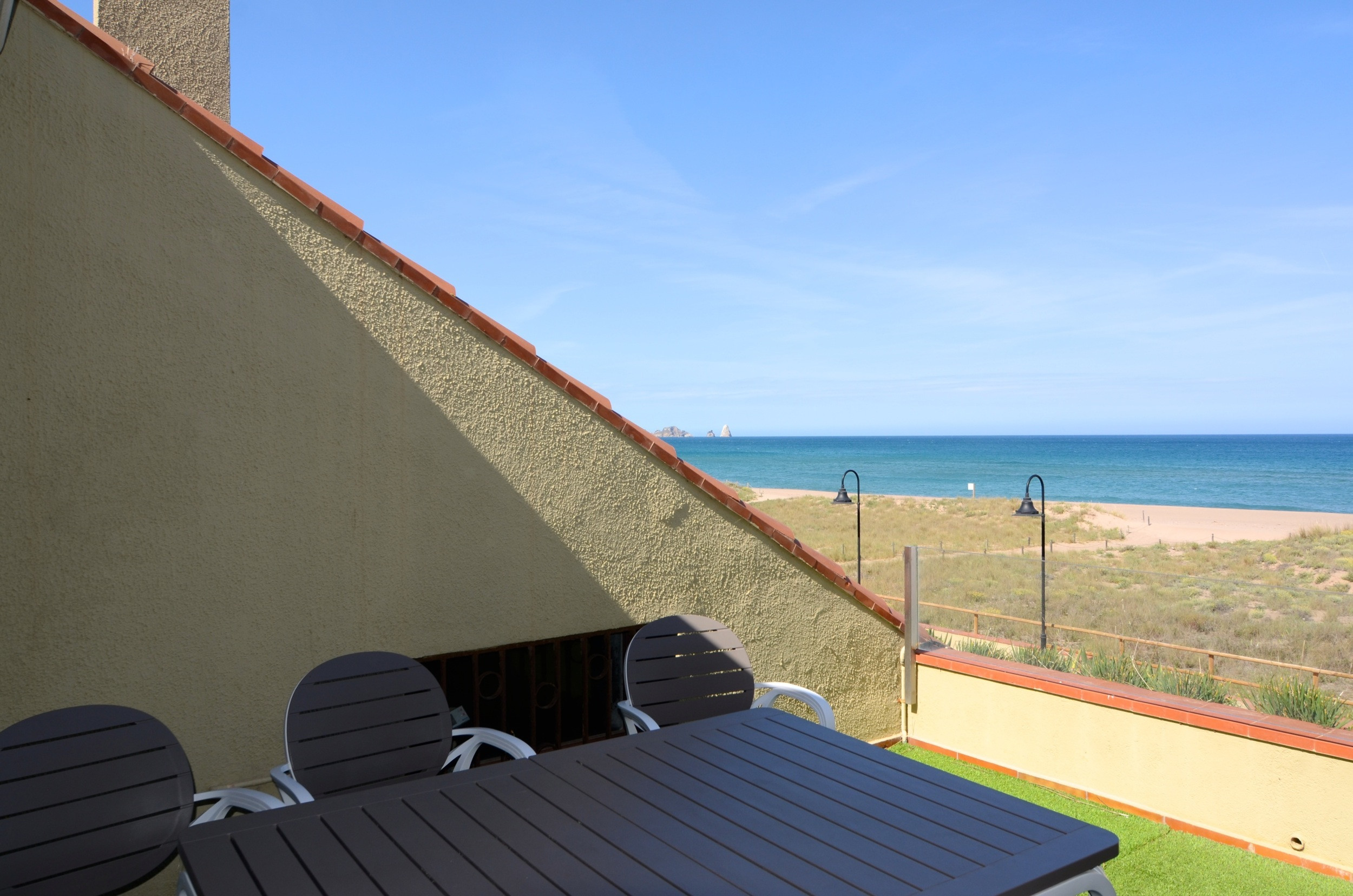Fantastische Wohnung in erster Meereslinie am Strand von Pals.In der Gemeinschaft Villa del Golf mit schönem Gemeinschaftsgarten, Schwimmbad und direktem Zugang zum Strand, Apartment mit 4 Schlafzimmern und zwei Badezimmern mit Platz für 8 Personen. Das Apartment verfügt über ein geräumiges Wohn-Esszimmer mit Kamin, Business Center, offene Küche zum Wohnbereich und Terrasse mit Blick auf das Meer und die Medes-Inseln.Die Bettwäsche ist im Mietpreis inbegriffen. Wenn Sie möchten, können Sie beim Buchen auch Handtücher für 5€ pro Person hinzubuchen.Der Strand von Pals zeichnet sich durch eine ruhige und angenehme Urlaubs- und Erholungszone aus. Ein ausgedehnter Strand mit goldenen Sand und kristallklarem Wasser. Einer der besten Strände an der Costa Brava.