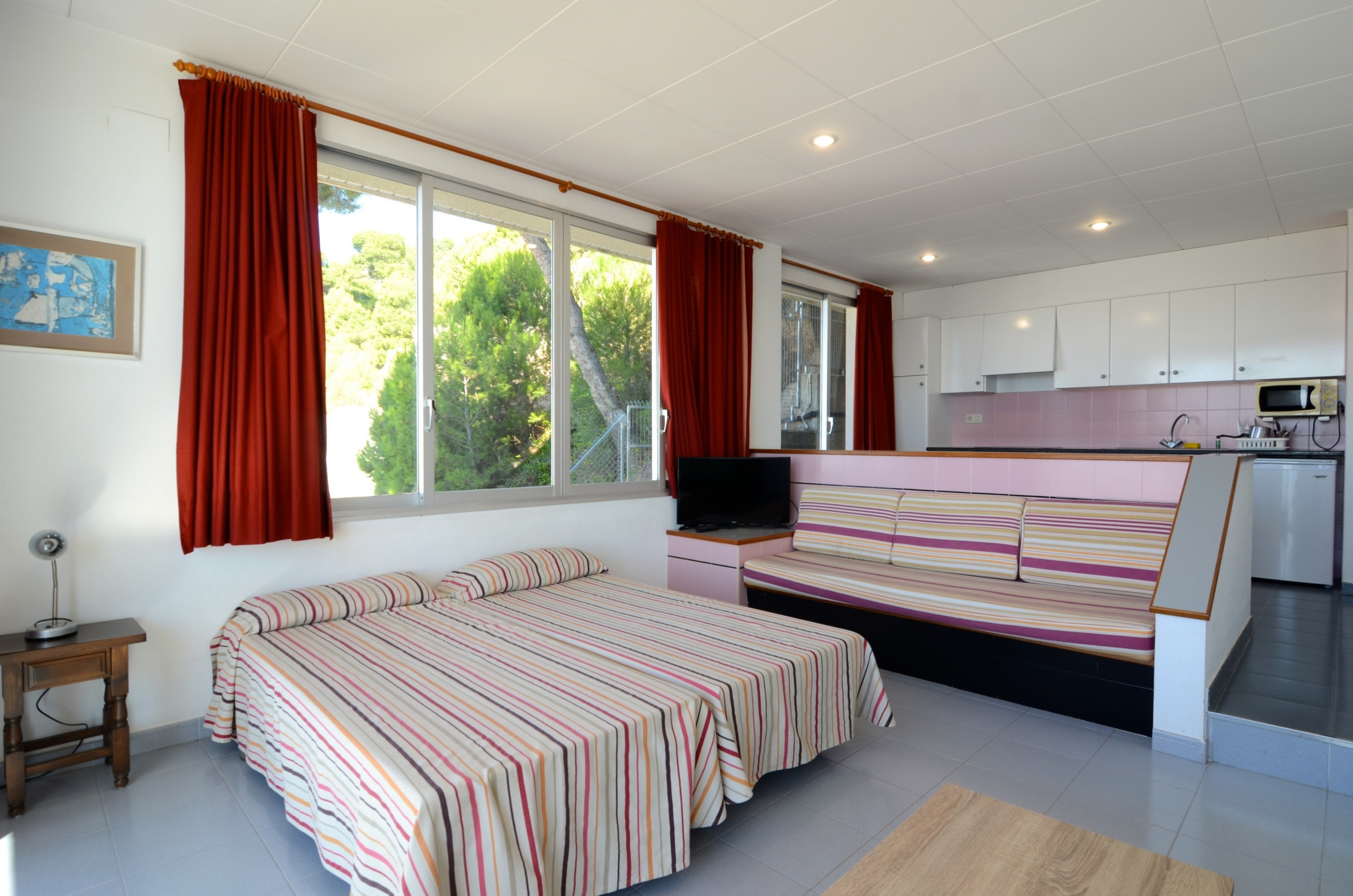 Auf dem Dach des Gebäudes gibt es einen Gemeinschaftspool und ein Kinderbecken mit den besten Aussichten auf die Costa Brava. Die Bettwäsche ist im Mietpreis inbegriffen. Wenn Sie möchten, können Sie auch Handtücher bei der Buchung hinzufügen, zum Preis von 5 € pro Person. Es gibt Treppen vor dem Zugang zum Gebäude.