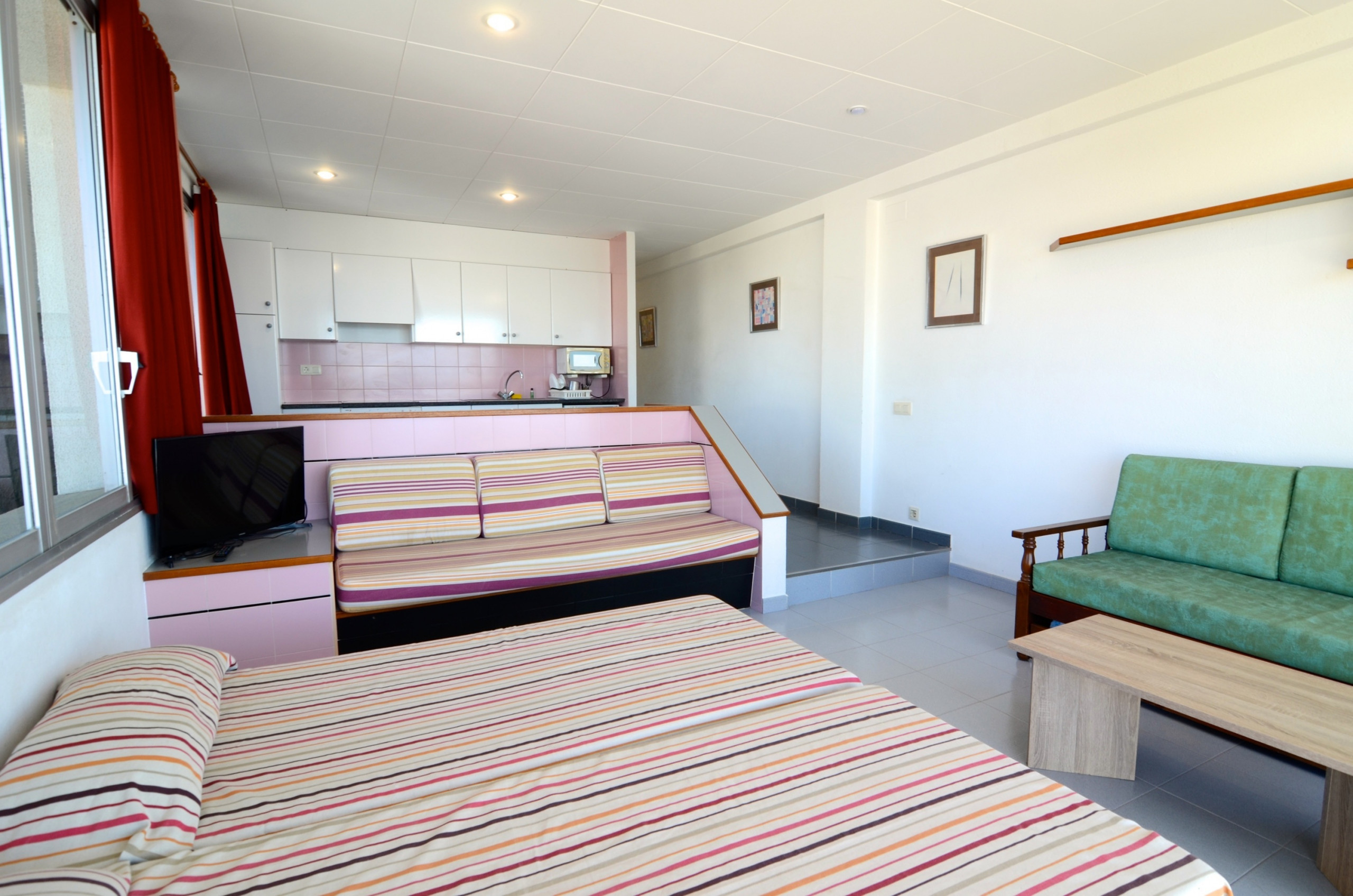 Das Studio ist sorgfältig mit Aufzug, Terrasse mit Möbeln, Gemeinschaftspool + Kinderbecken umgeben von einem grünen Garten und einem Fernseher ausgestattet. Internet kann je nach Verfügbarkeit bereitgestellt werden (10 €/Tag).
