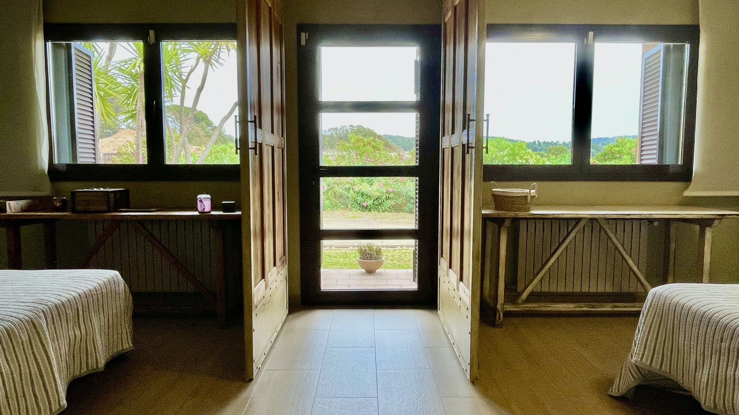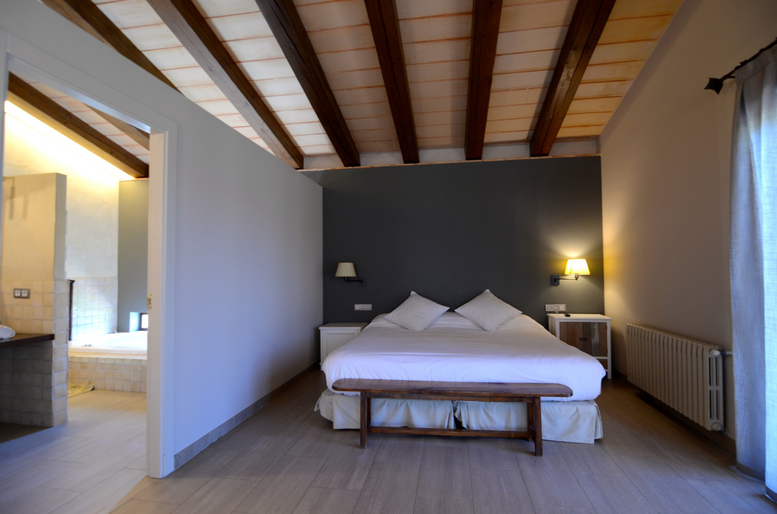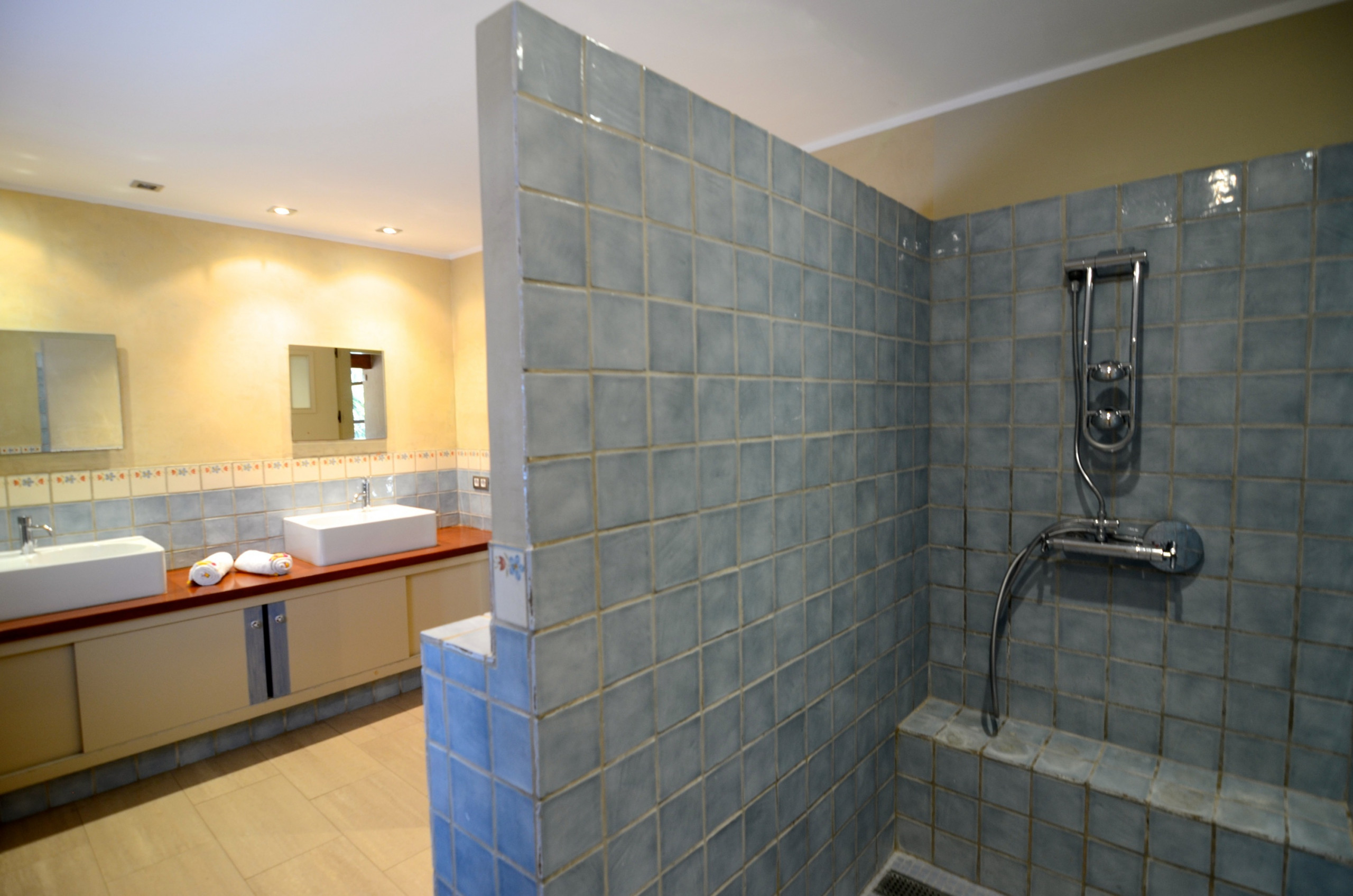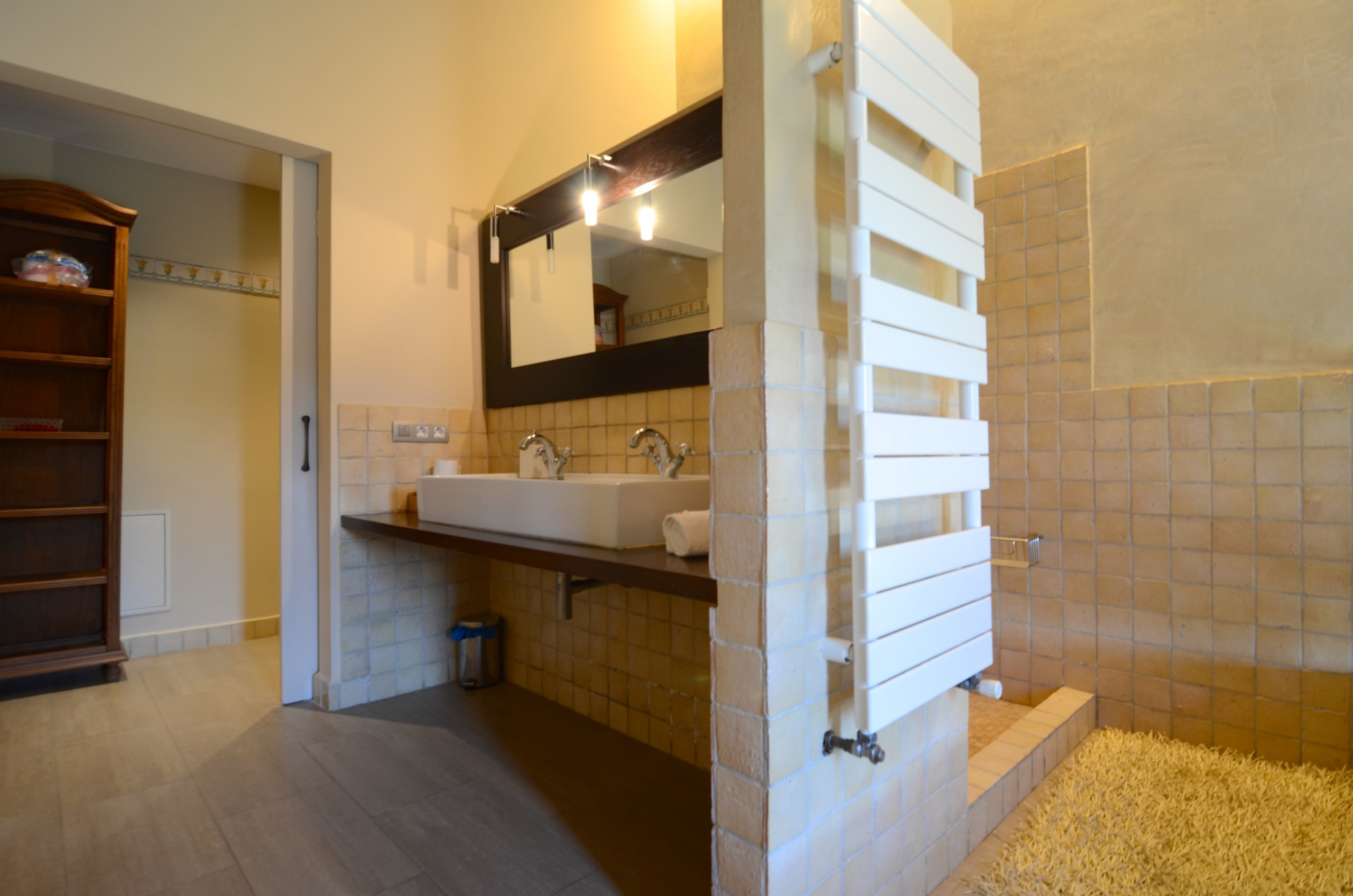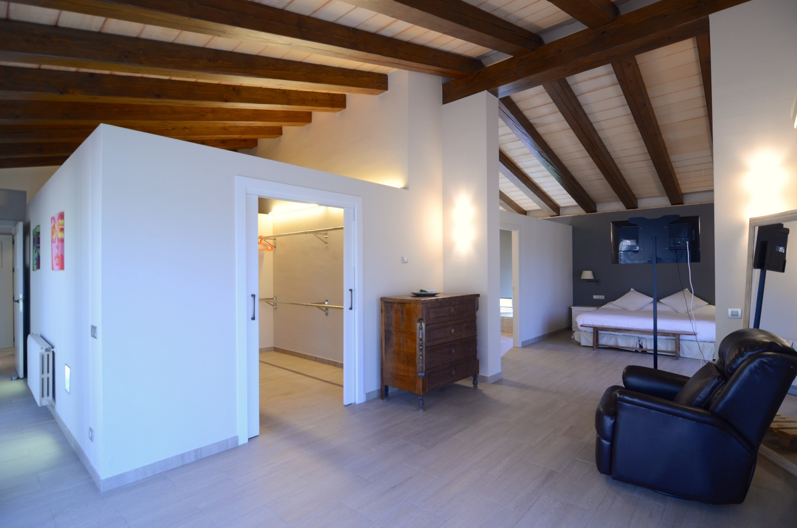 Im Erdgeschoss gibt es eine große Suite mit Ankleide und Badezimmer mit Whirlpool und Dusche, zwei zimmer mit Ankleide und Badezimmer, großes Wohnzimmer, Küche und Waschküche. Im ersten Stock gibt es zwei Doppelzimmer und ein Spielzimmer für Kinder.