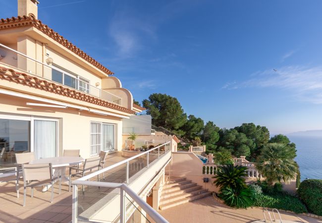 Gelegen in der prestigeträchtigen Zone des Cap de la Barra in l'Estartit, bietet diese Luxusvilla unvergleichliche Panoramablicke aufs Meer, die die Bucht von Pals und das Cap de Begur umfassen. Mit einer privilegierten Lage befindet sie sich nur wenige Minuten von Sandstränden, dem Dorfzentrum und den unberührten Buchten des Naturparks Montgrí entfernt - eine einzigartige Umgebung, die Natur, Ruhe und den wilden Charme der Costa Brava kombiniert.