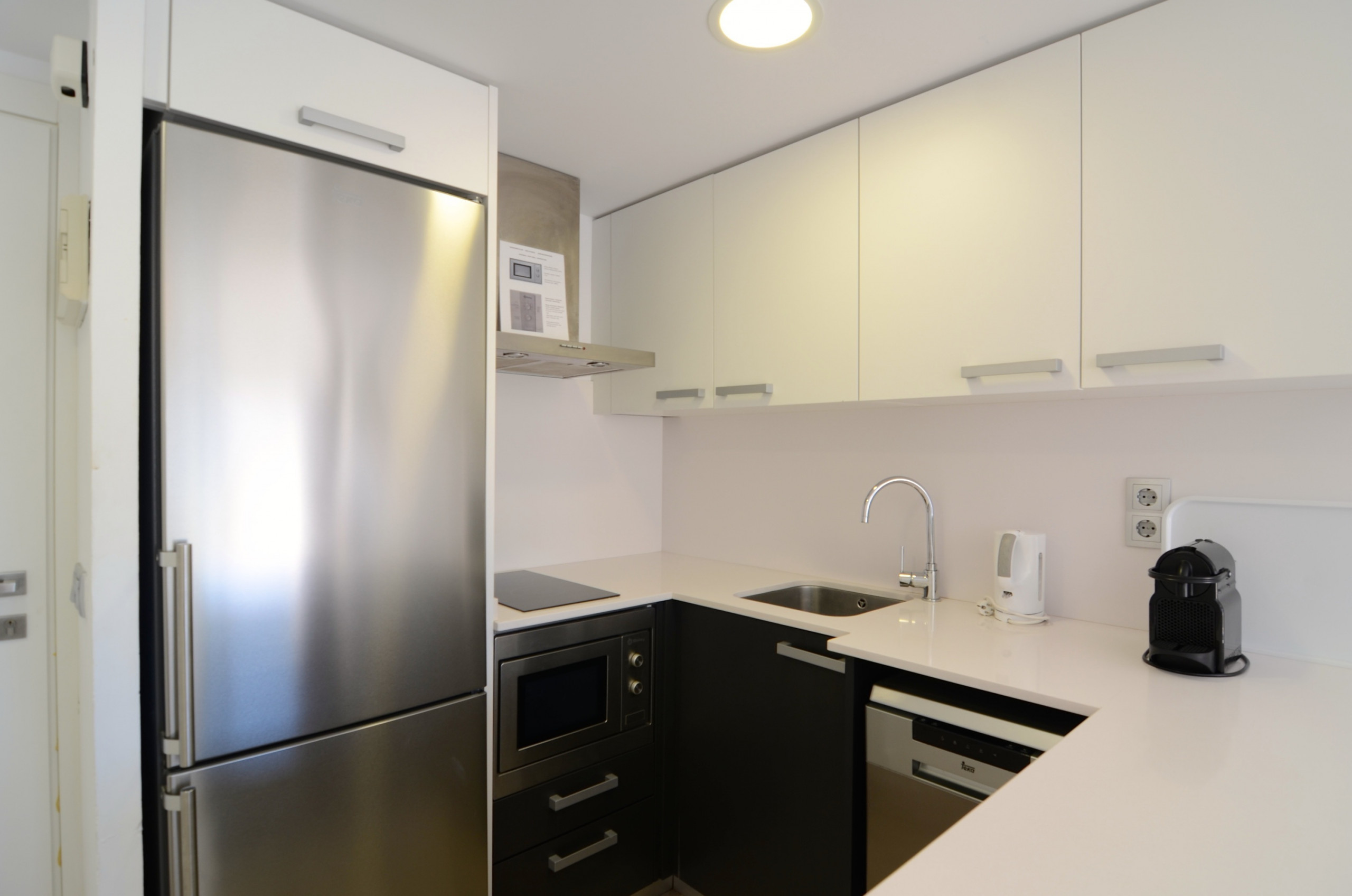 De open keuken, uitgerust met een keramisch kooksysteem, is volledig voorzien van essentiële apparaten zoals een koelkast, magnetron, vriezer, wasmachine, vaatwasser, evenals servies, bestek, keukengerei, koffiezetapparaat en broodrooster. Beddengoed is inbegrepen in de prijs, en handdoeken kunnen worden toegevoegd voor 5€/persoon.