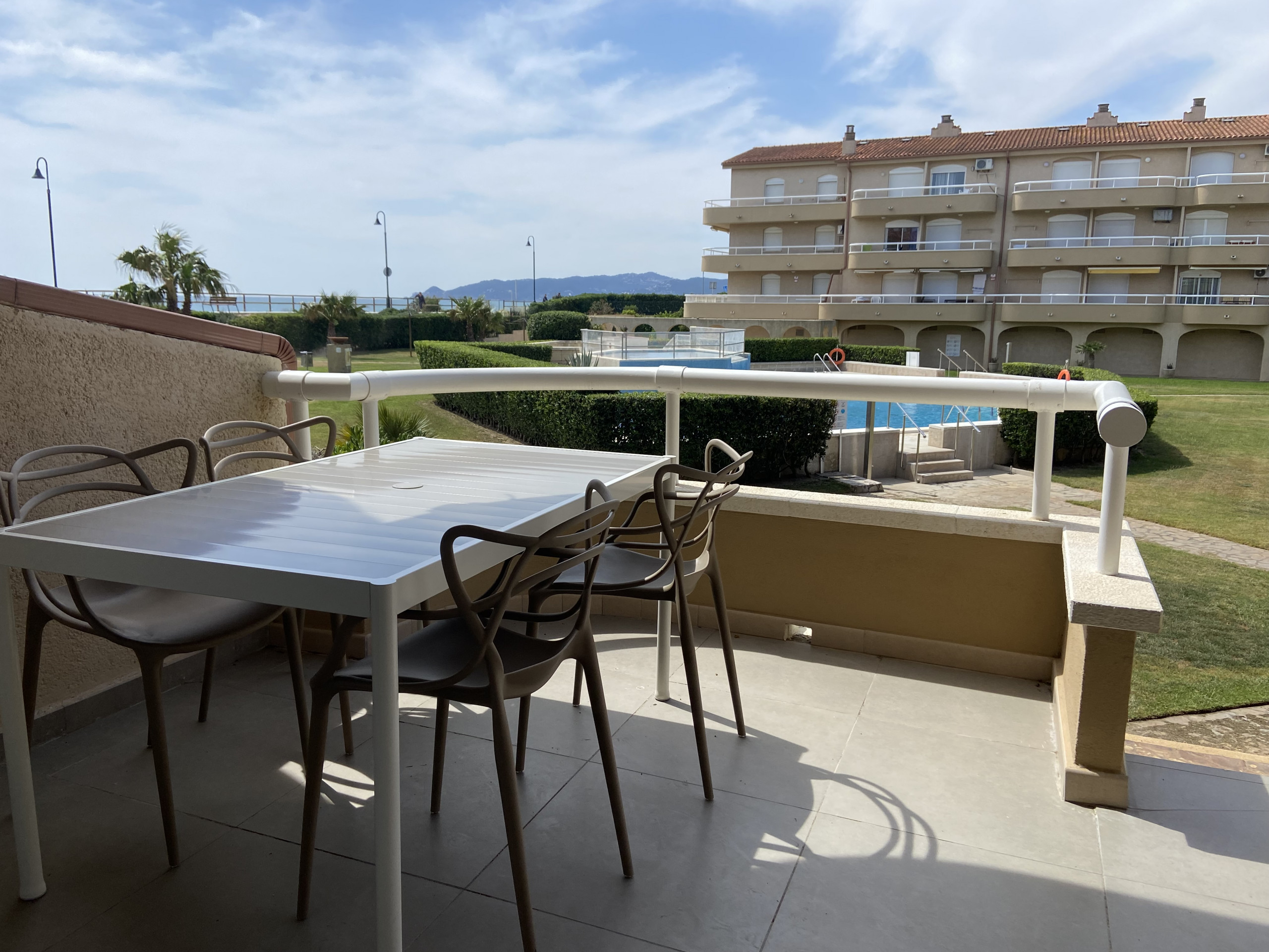 Geniet van directe toegang tot het zwembad vanaf het terras met uitzicht op de tuin en het zwembad. Deze accommodatie is ideaal om echt te genieten van het strand en waterplezier. Je verblijf belooft de schoonheid van de kust en het comfort van een perfecte vakantie aan zee."