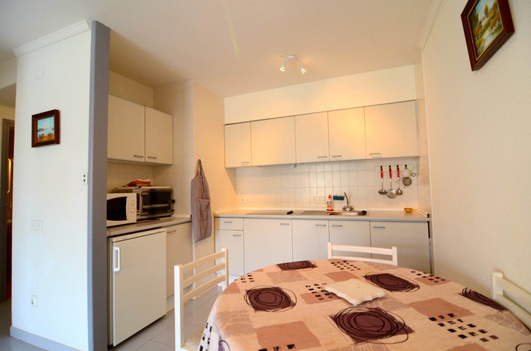 In het Rocamaura-complex wordt dit appartement met één slaapkamer te huur aangeboden voor vakanties, met een stapelbed en een eenpersoonsbed, geschikt voor 3 personen. Het heeft een woon-eetkamer met een bank en tv, een kleine aparte keuken en een badkamer met douche.