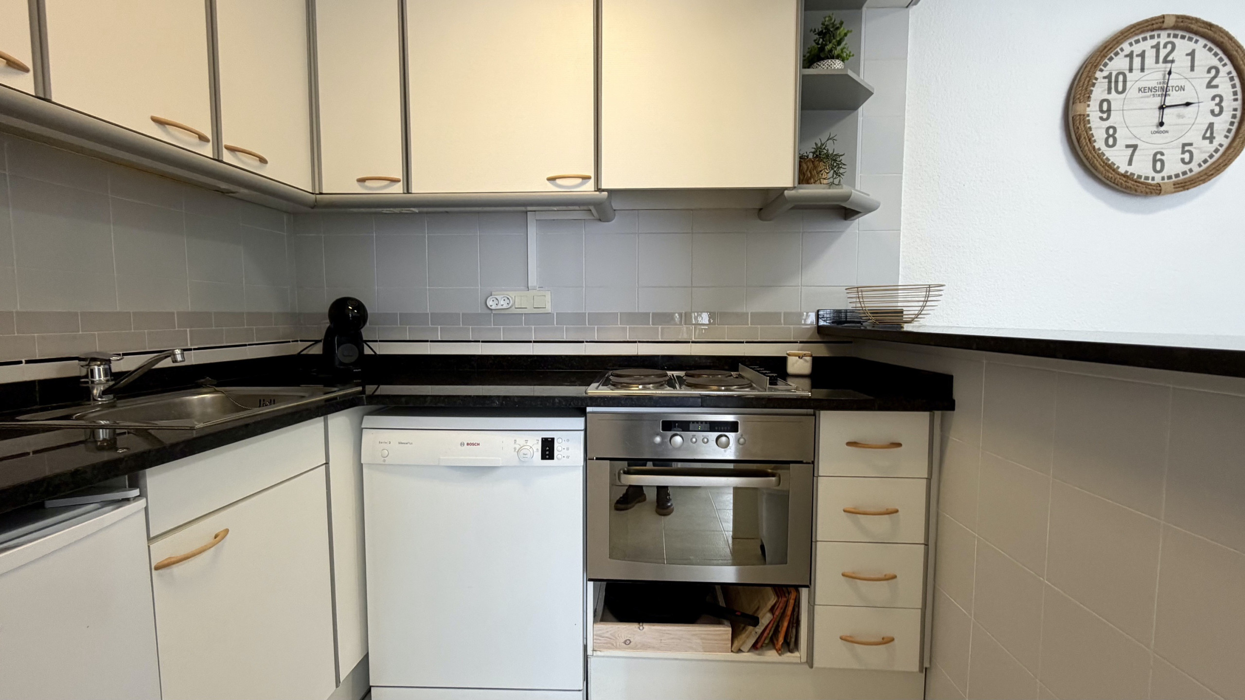 Het appartement is uitgerust met alle voorzieningen die je nodig hebt. Het beschikt over een lift voor gemakkelijke toegang, een aangenaam terras waar je kunt ontspannen en van het uitzicht kunt genieten, en een televisie voor extra entertainment. De open keuken is voorzien van apparatuur zoals een koelkast, oven, wasmachine, vaatwasser, evenals servies, bestek, keukengerei en een koffiezetapparaat. U heeft toegang tot het internet dat door het agentschap wordt aangeboden, op basis van beschikbaarheid (voor € 10/dag).