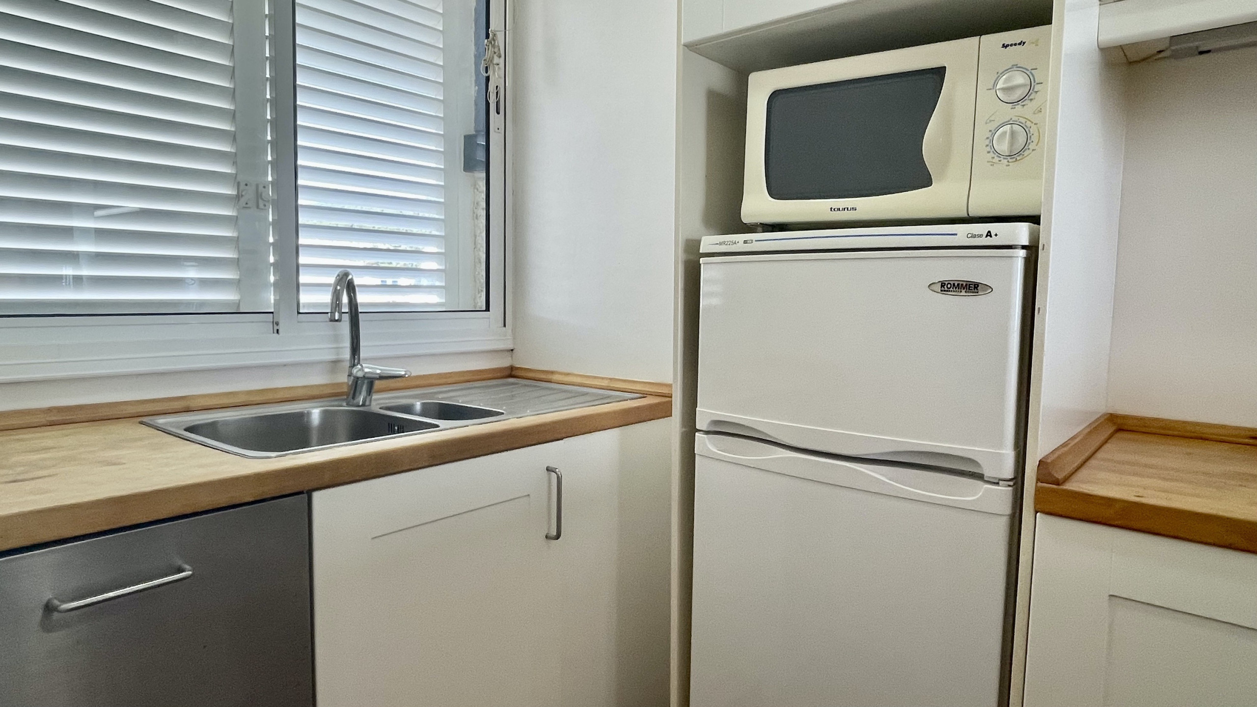 De open keuken, met keramische kookplaat, is volledig uitgerust met een koelkast, magnetron, vriezer, wasmachine, vaatwasser, evenals servies, bestek, keukengerei, koffiezetapparaat, broodrooster en citruspers.