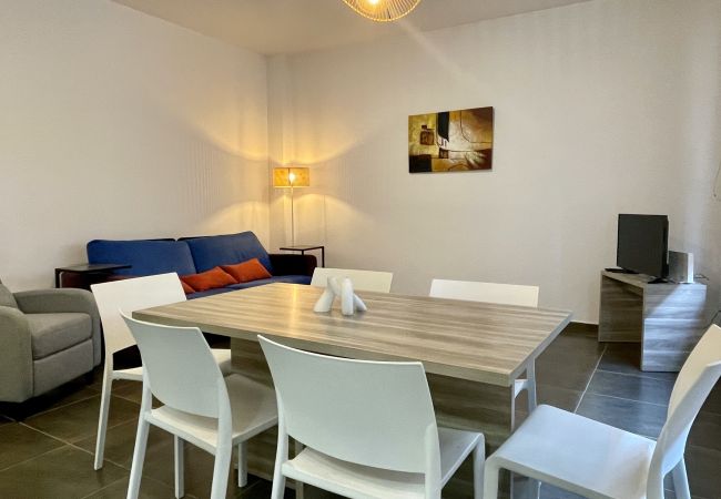 In het Rocamaura-complex wordt dit appartement met één slaapkamer te huur aangeboden voor vakanties, met een stapelbed en een eenpersoonsbed, geschikt voor 3 personen. Het heeft een woon-eetkamer met een bank en tv, een kleine aparte keuken en een badkamer met douche.
