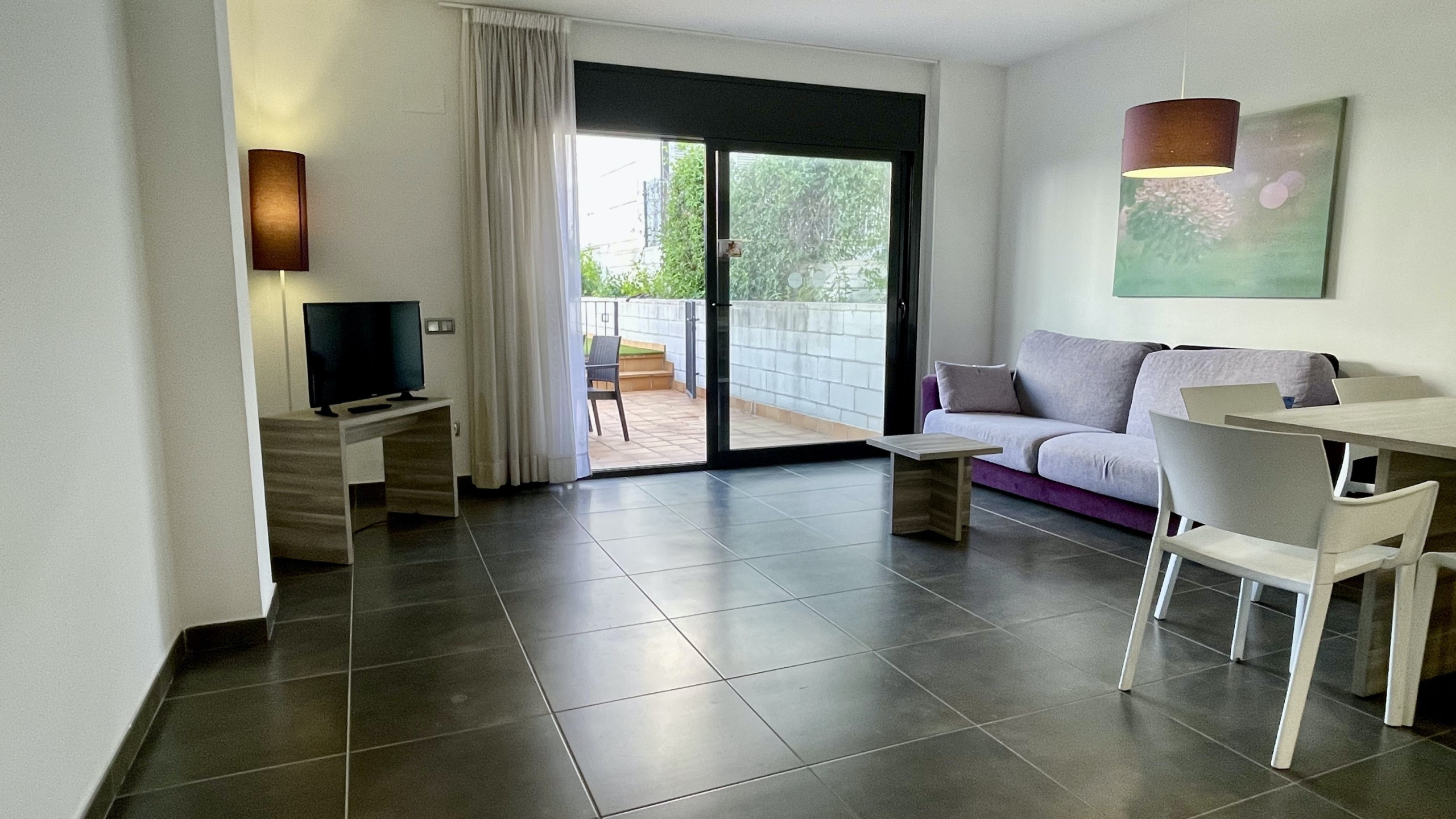 De residentie Tamarindos biedt een charmante gemeenschappelijke ruimte met een weelderige tuin en een verfrissend zwembad, ideaal om af te koelen en te genieten van de zon. Hoewel het appartement geen direct uitzicht op het zwembad heeft, kunt u dankzij de bevoorrechte locatie op slechts enkele meters van het strand en de natuurlijke omgeving van La Platera volop genieten van de schoonheid van de omgeving.