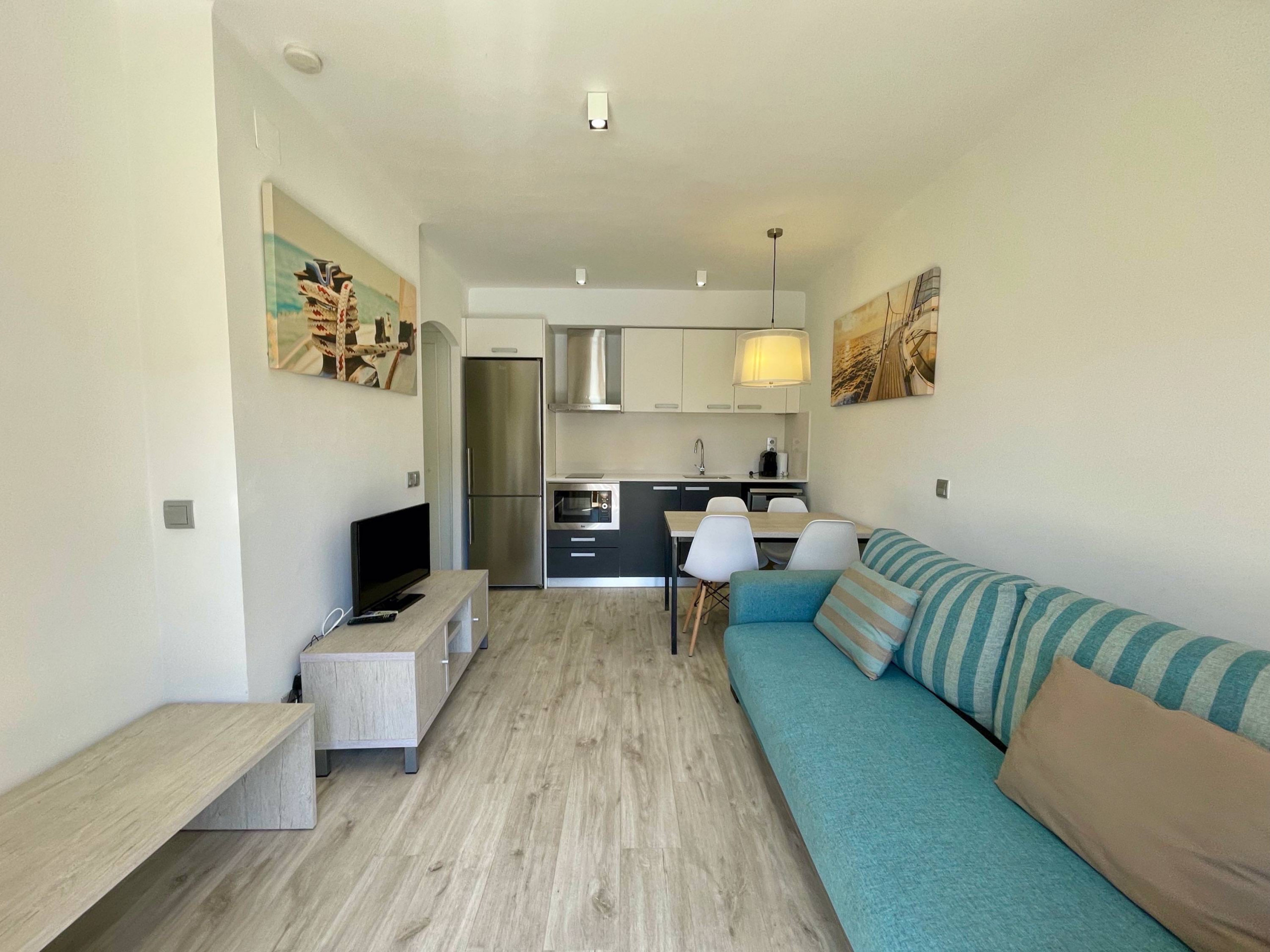 In het Rocamaura-complex wordt dit appartement met één slaapkamer te huur aangeboden voor vakanties, met een stapelbed en een eenpersoonsbed, geschikt voor 3 personen. Het heeft een woon-eetkamer met een bank en tv, een kleine aparte keuken en een badkamer met douche.