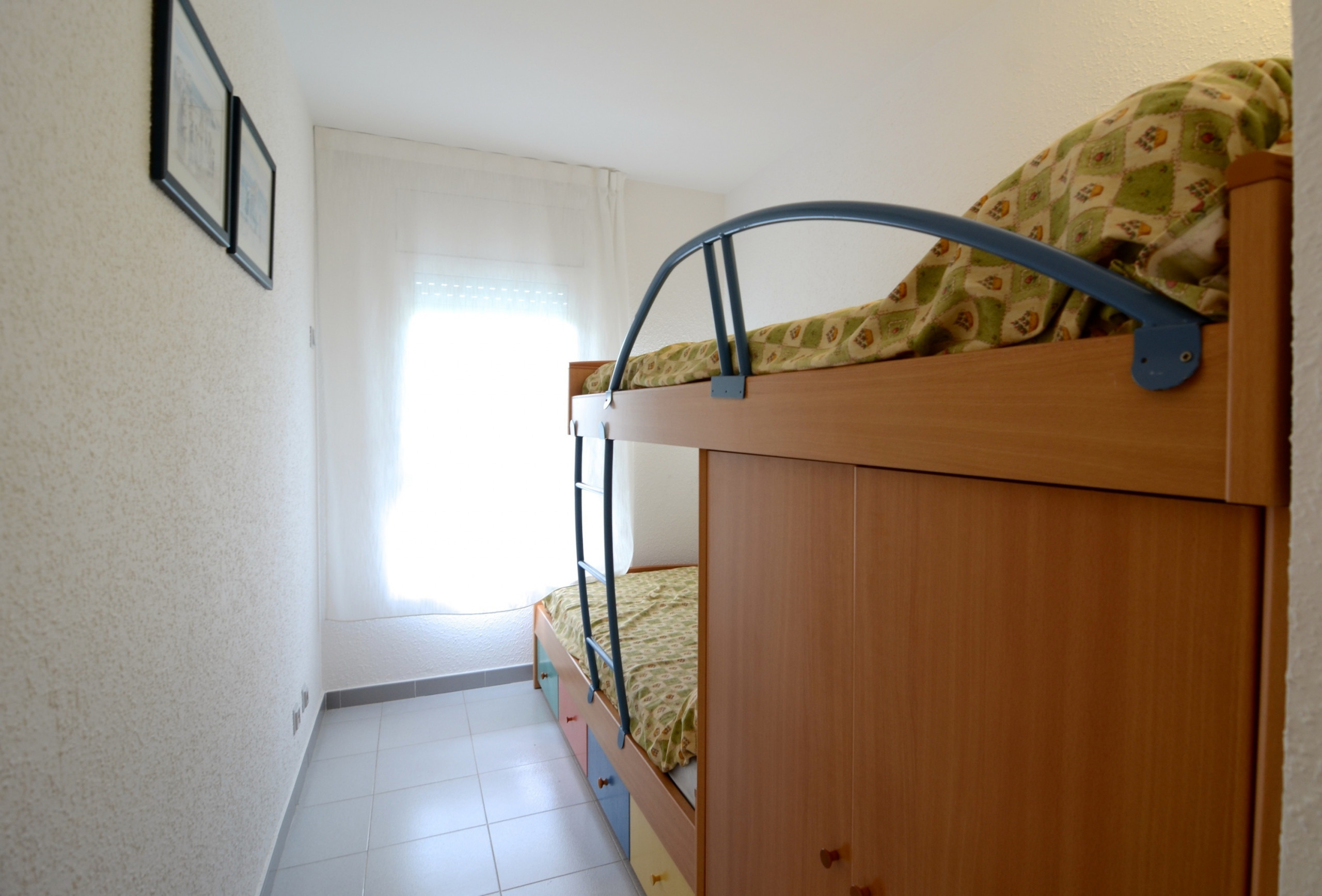 In het Rocamaura-complex wordt dit appartement met één slaapkamer te huur aangeboden voor vakanties, met een stapelbed en een eenpersoonsbed, geschikt voor 3 personen. Het heeft een woon-eetkamer met een bank en tv, een kleine aparte keuken en een badkamer met douche.
