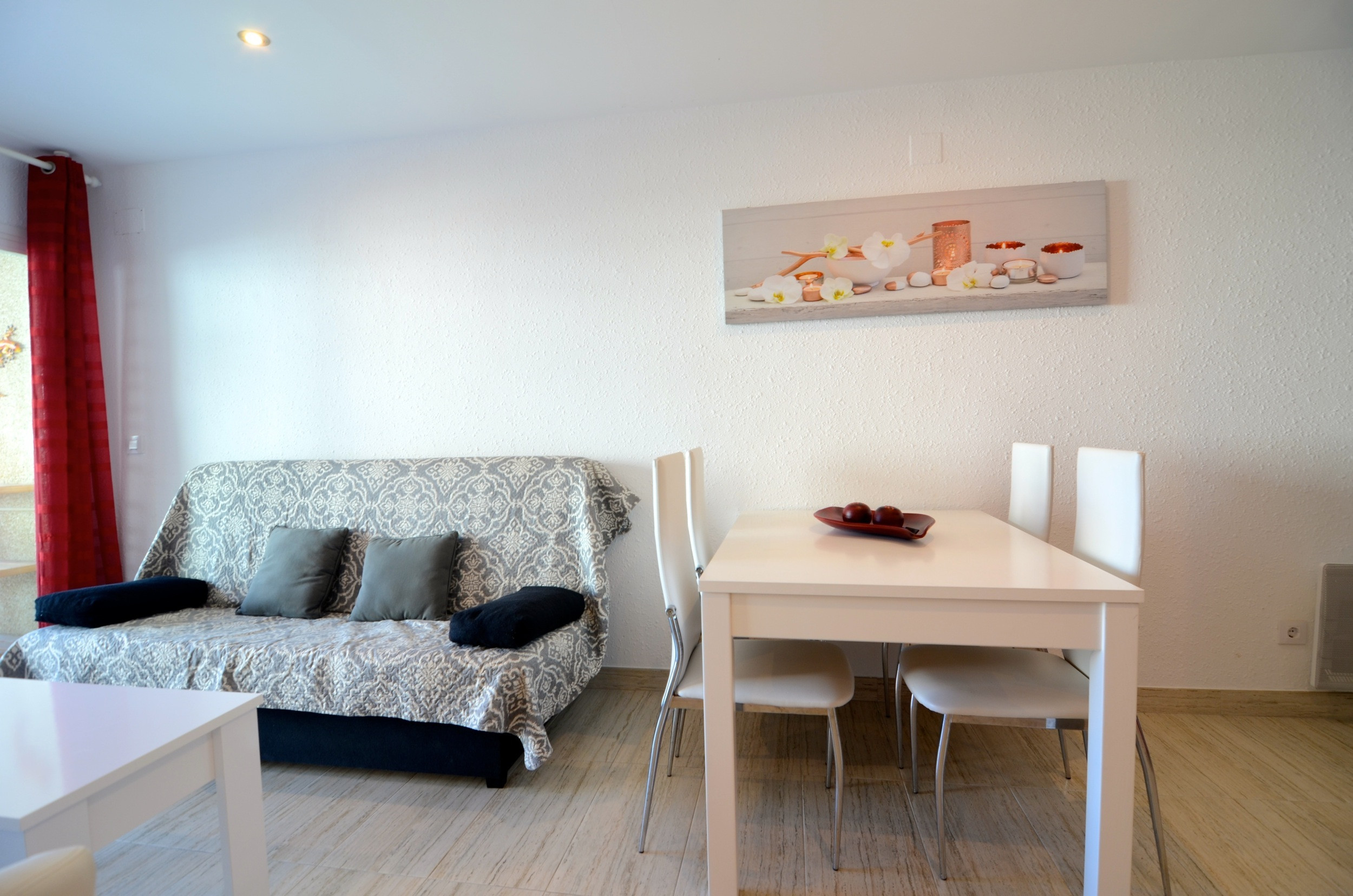 In het Rocamaura-complex wordt dit appartement met één slaapkamer te huur aangeboden voor vakanties, met een stapelbed en een eenpersoonsbed, geschikt voor 3 personen. Het heeft een woon-eetkamer met een bank en tv, een kleine aparte keuken en een badkamer met douche.