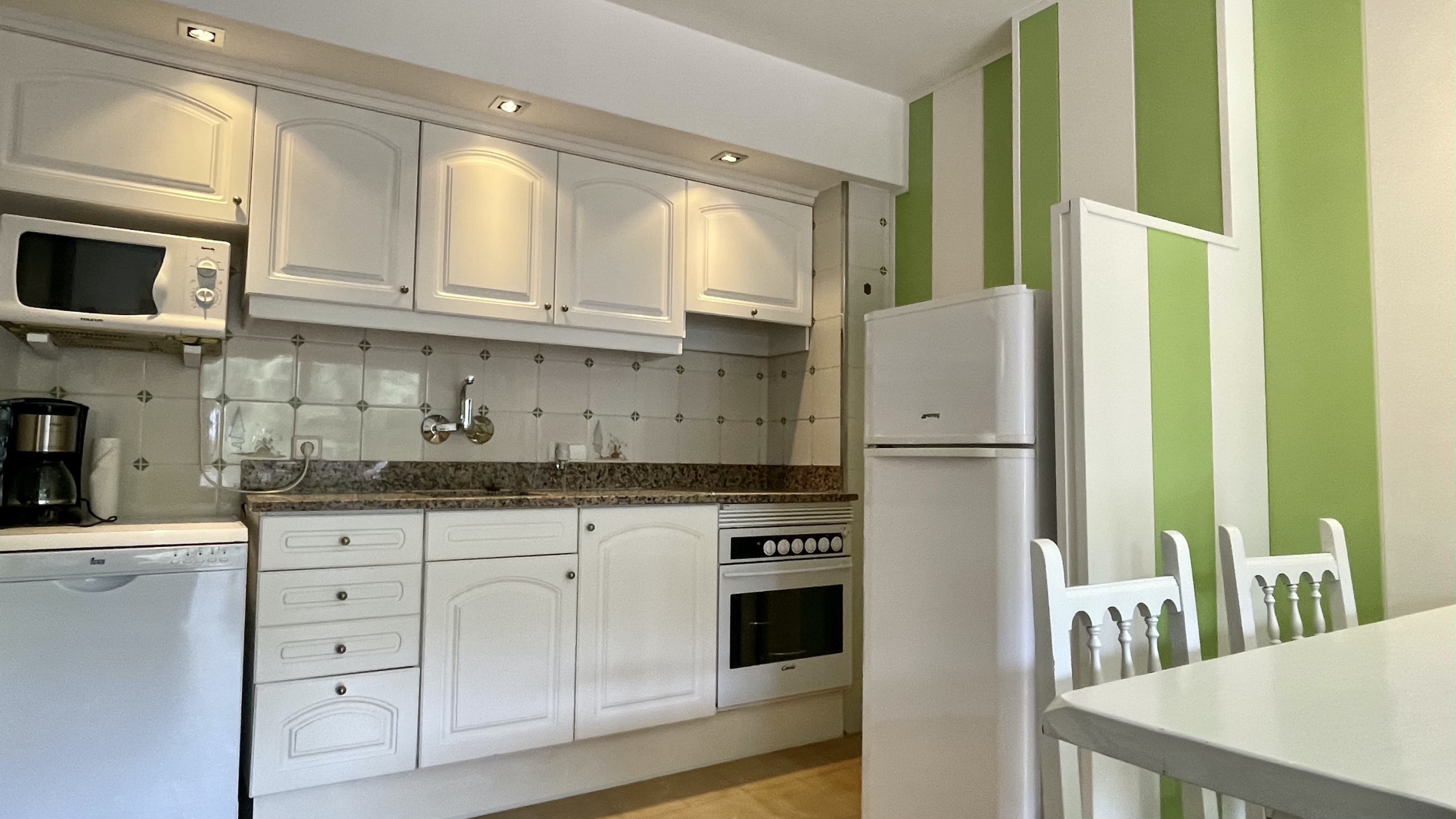 Binnen beschikt het appartement over 1 televisie voor entertainment. De keuken is goed uitgerust met moderne apparatuur, waaronder een koelkast, magnetron, oven, vriezer, wasmachine, vaatwasser en broodrooster. Servies, bestek en keukengerei worden verstrekt, zodat het handig is om maaltijden in het appartement te bereiden en te genieten. Beddengoed is inbegrepen in de prijs en u kunt handdoeken toevoegen voor €5/persoon.