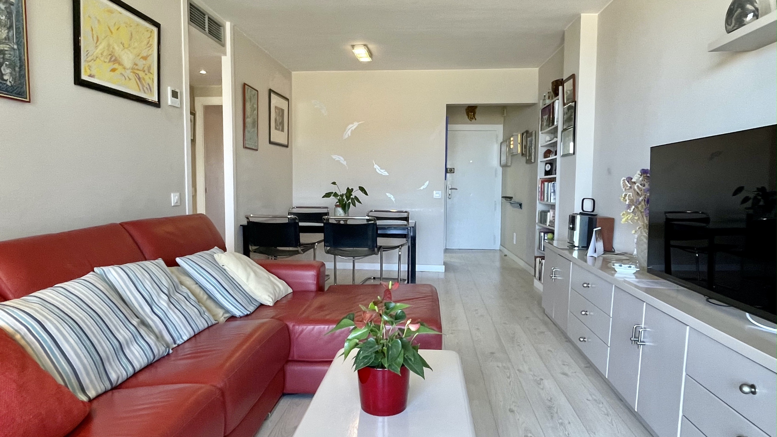 Dit goed uitgeruste appartement beschikt over een gemeubileerd terras waar je momenten van ontspanning kunt beleven terwijl je geniet van de zeewind. Het interieur is zorgvuldig uitgerust met voorzieningen zoals een strijkijzer, airconditioning en een gemeenschappelijk zwembad, wat zorgt voor een comfortabel en aangenaam verblijf.