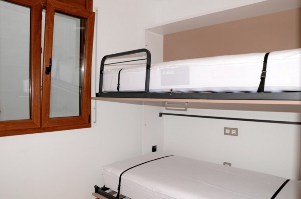Het appartement beschikt over twee slaapkamers uitgerust met drie bedden: een stapelbed, een tweepersoonsbed en een slaapbank, waardoor een comfortabele rust voor alle gasten wordt gegarandeerd. Het heeft een enkele badkamer met een bad, ideaal om te ontspannen na een dag strand.