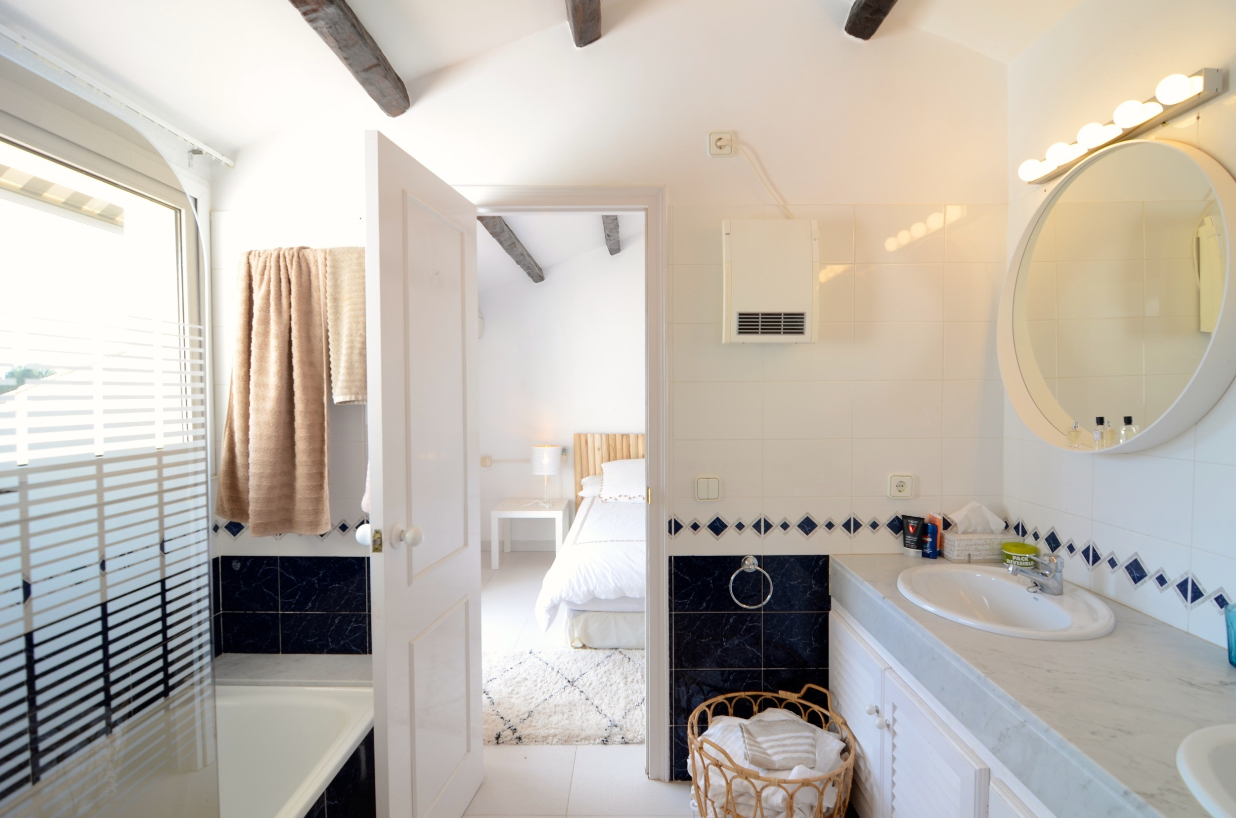 Via een trap bereiken we het bovenste niveau van de duplex waar we de hoofdslaapkamer vinden met een grote badkamer met bad en douche en een terras met volledige privacy.