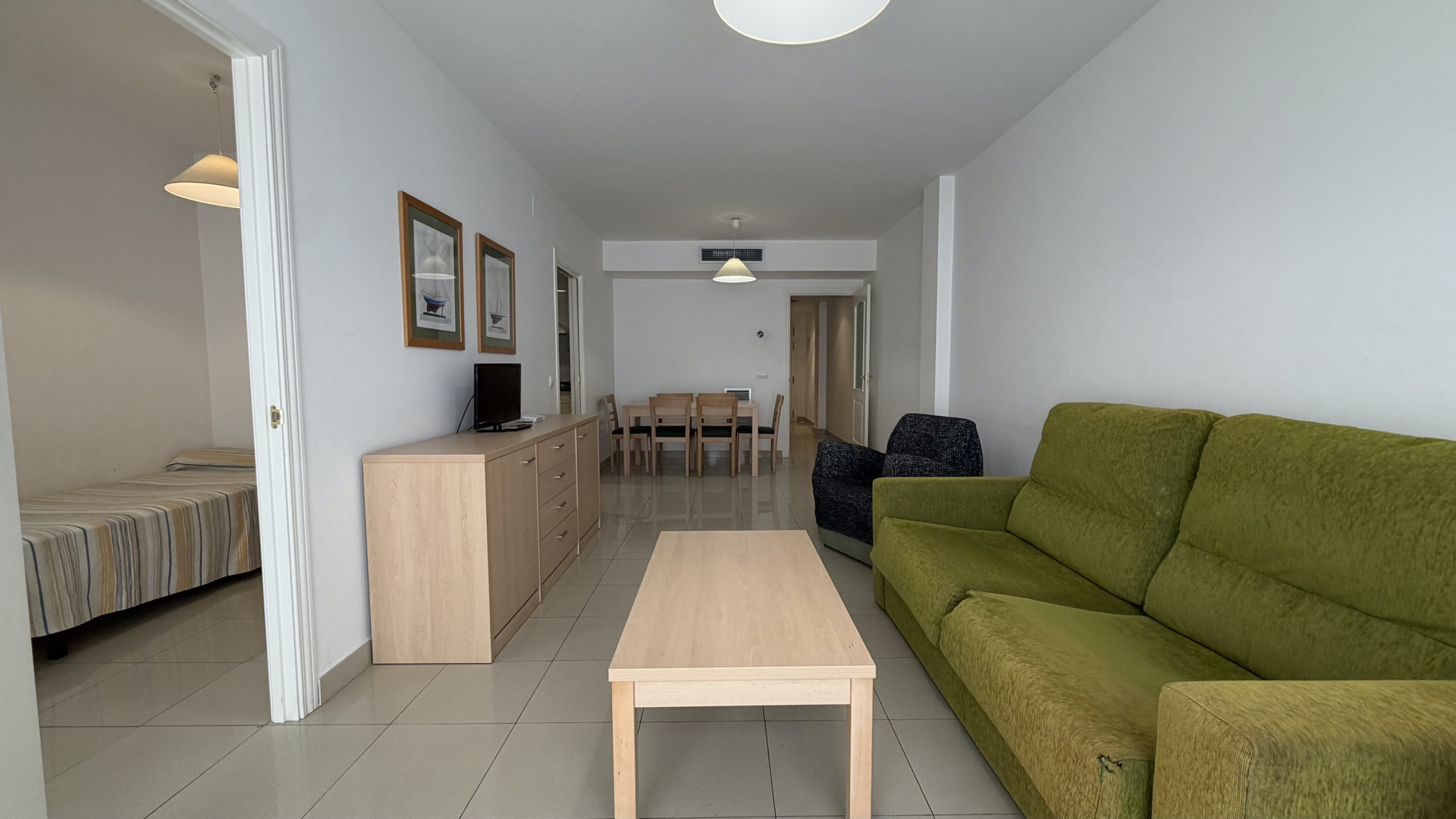Het appartement beschikt over twee slaapkamers uitgerust met drie bedden: een stapelbed, een tweepersoonsbed en een slaapbank, waardoor een comfortabele rust voor alle gasten wordt gegarandeerd. Het heeft een enkele badkamer met een bad, ideaal om te ontspannen na een dag strand.