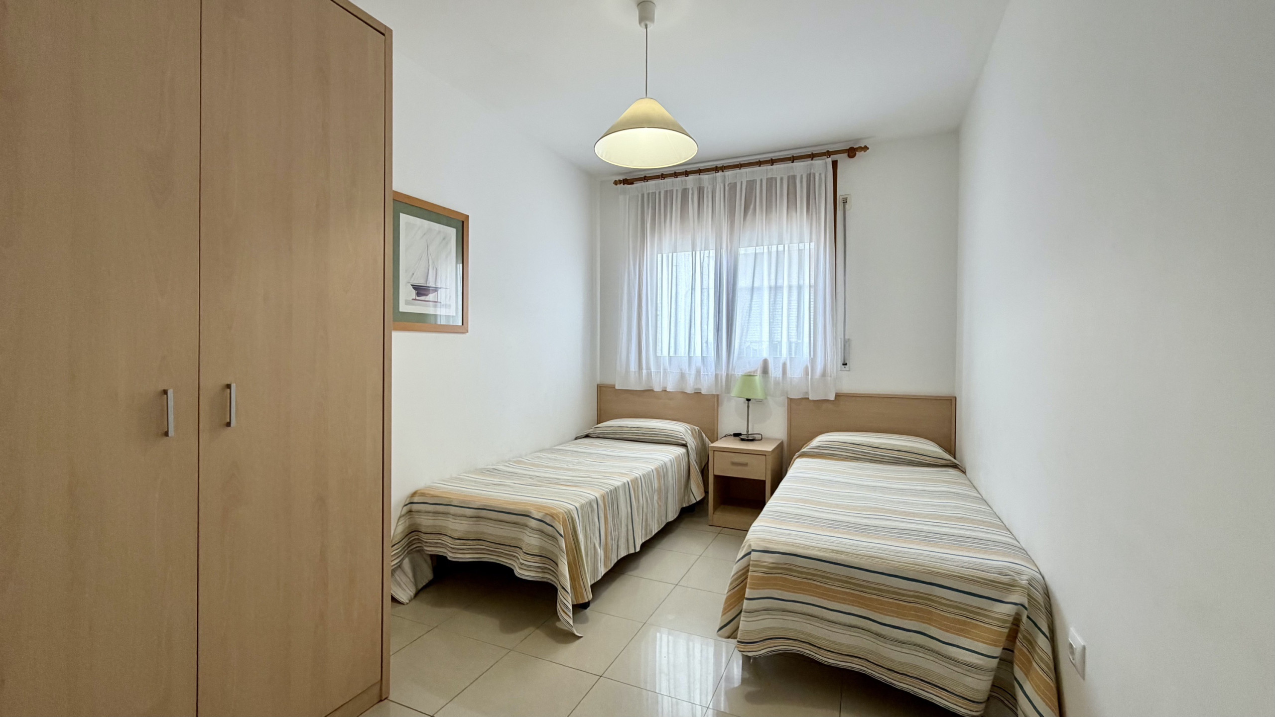 Het appartement beschikt over twee slaapkamers uitgerust met drie bedden: een stapelbed, een tweepersoonsbed en een slaapbank, waardoor een comfortabele rust voor alle gasten wordt gegarandeerd. Het heeft een enkele badkamer met een bad, ideaal om te ontspannen na een dag strand.