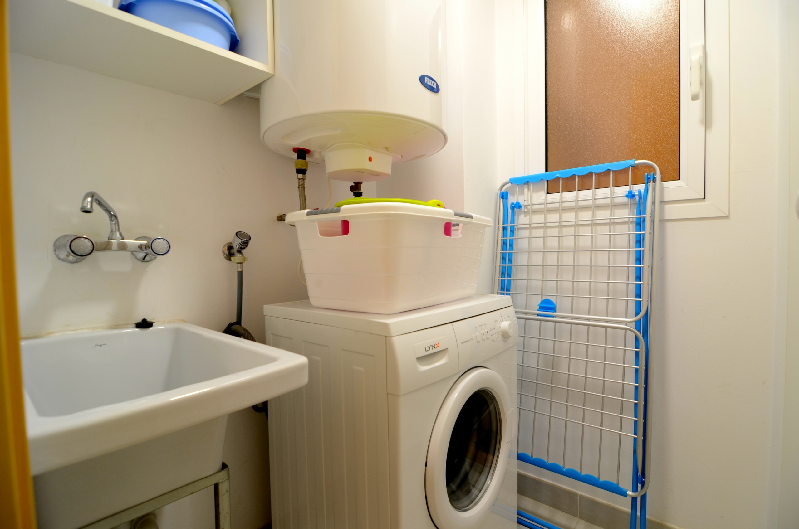 De open keuken is volledig uitgerust met moderne apparaten zoals koelkast, wasmachine, oven, magnetron, koffiezetapparaat, broodrooster en volledig servies. Hoewel het geen airconditioning heeft, beschikt het over een praktische en lichte indeling.