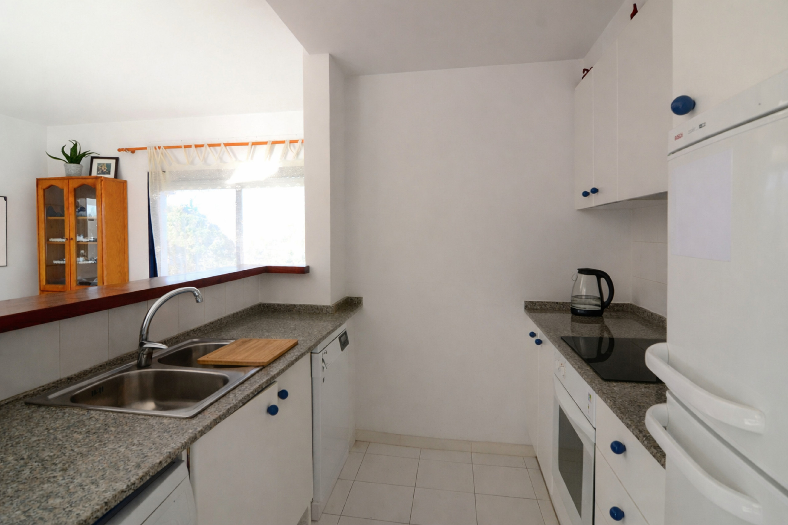 De open keuken, met elektrisch fornuis, is uitgerust met koelkast, oven, vaatwasmachine, servies/bestek, keukengerei, koffiezetapparaat, broodrooster en .