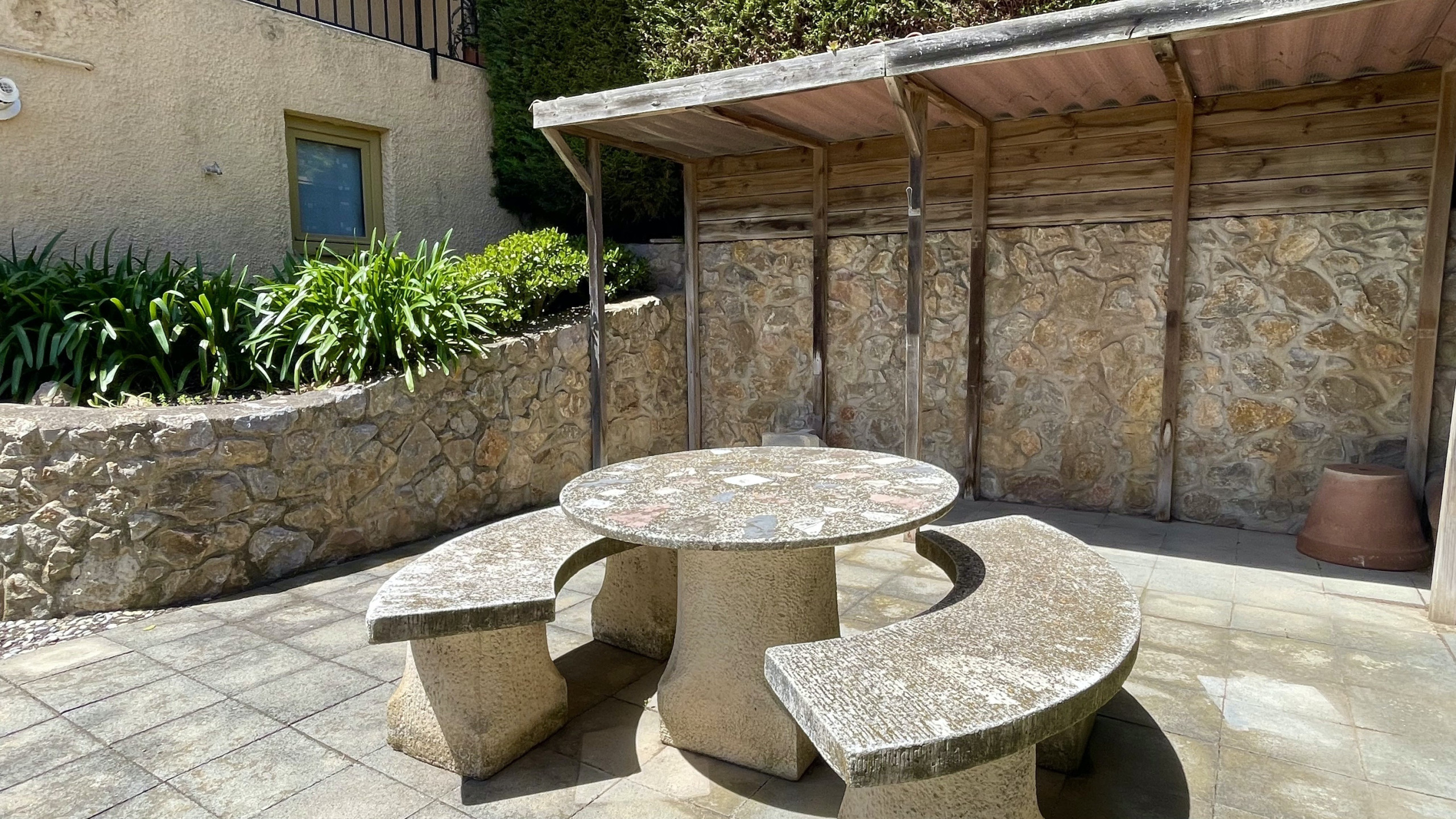 Het huis beschikt over diverse voorzieningen, waaronder een tuin, tuinmeubilair, terras, strijkijzer, gemeenschappelijk zwembad en openlucht parkeergelegenheid. Gasten kunnen genieten van een tv (inclusief) en internettoegang (afhankelijk van beschikbaarheid 10€/dag).