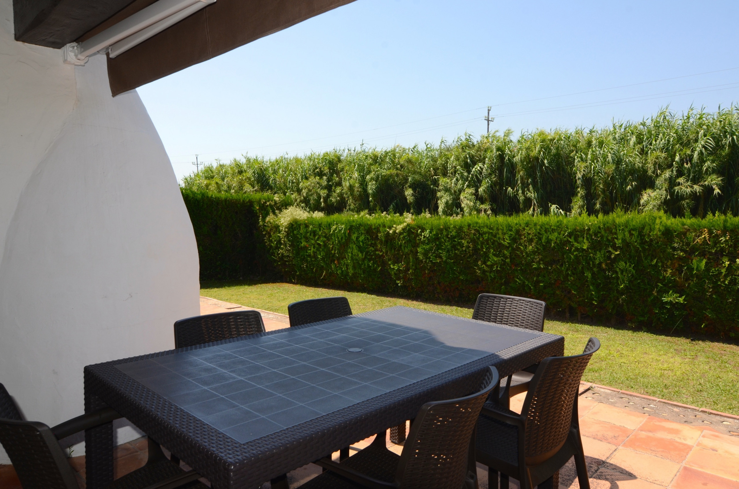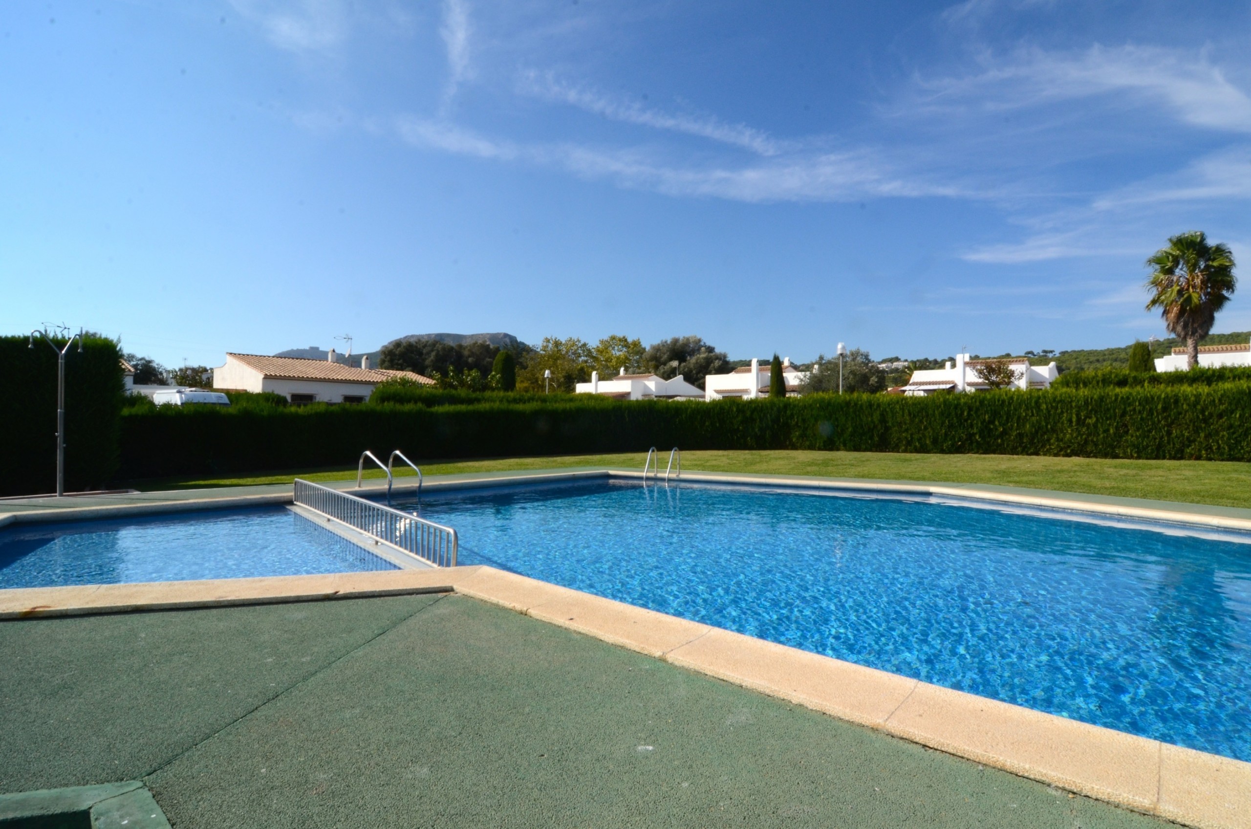 Direct voor het huis vindt u het gemeenschappelijke gebied met een uitgestrekte tuin en een zwembad, waardoor het een perfecte plek is om te ontspannen en van de zon te genieten.