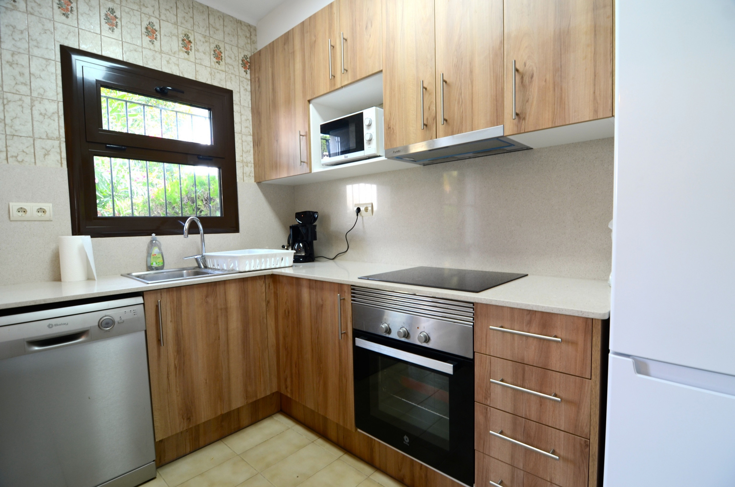 De open keuken, met elektrisch fornuis, is uitgerust met koelkast, magnetron, oven, vriezer, wasmachine, vaatwasmachine, servies/bestek, keukengerei, koffiezetapparaat, broodrooster en .