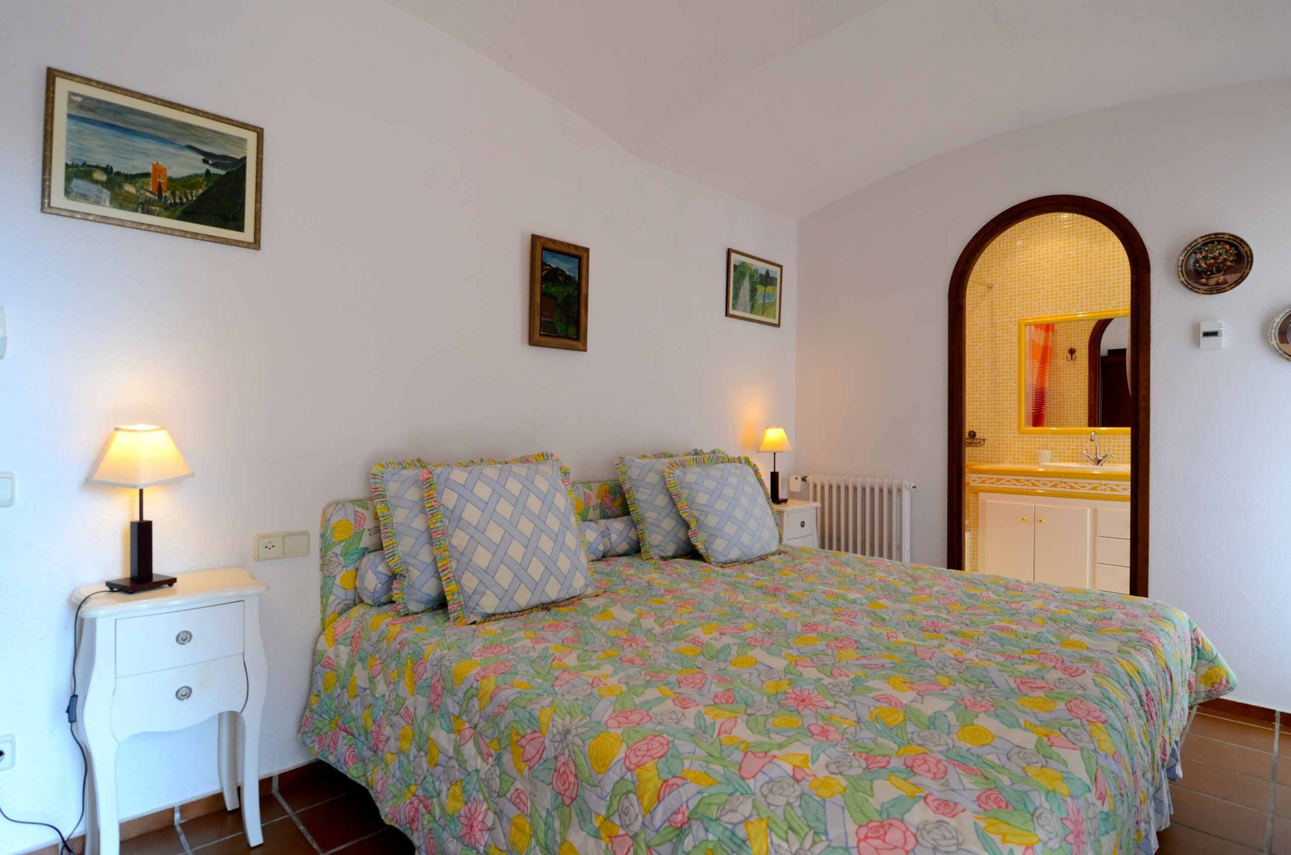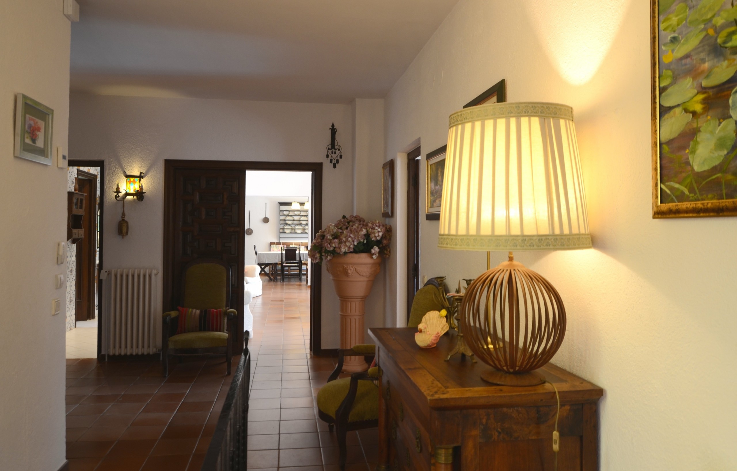 Binnen, op de begane grond, is er een grote suite met kleedkamer en een badkamer met jacuzzi en douche, twee kamers met kleedkamer en badkamer, grote woonkamer, keuken en wasruimte. Op de eerste verdieping zijn er twee tweepersoonskamers en een speelkamer voor kinderen.