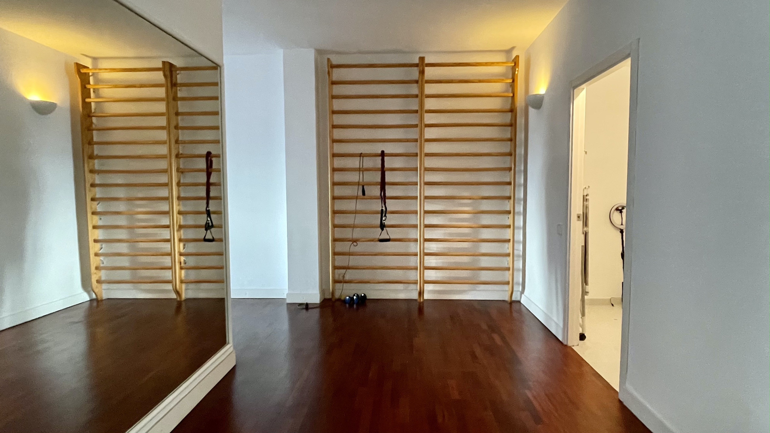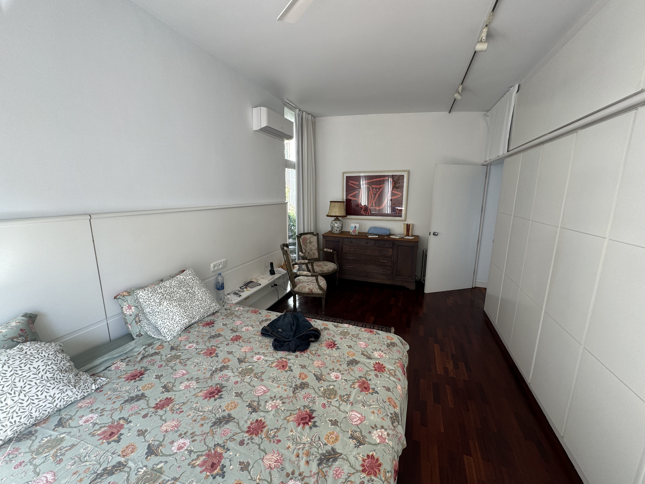 Het beschikt over drie elegant ingerichte slaapkamers, drie complete badkamers en een privéfitnessruimte. Bovendien heeft het huis een garage met plaats voor drie auto's, wat voor comfort en veiligheid tijdens het verblijf zorgt.