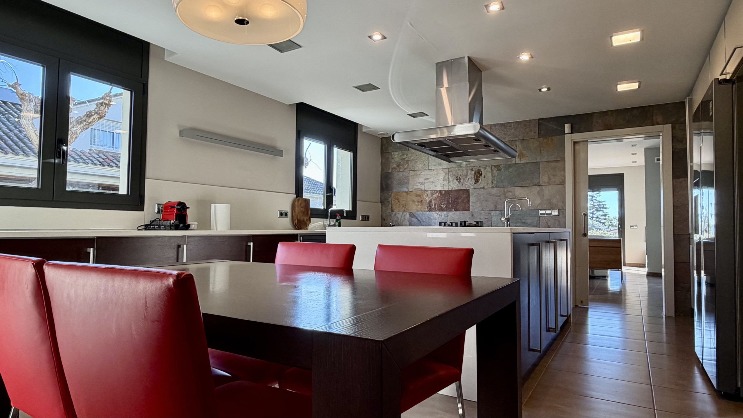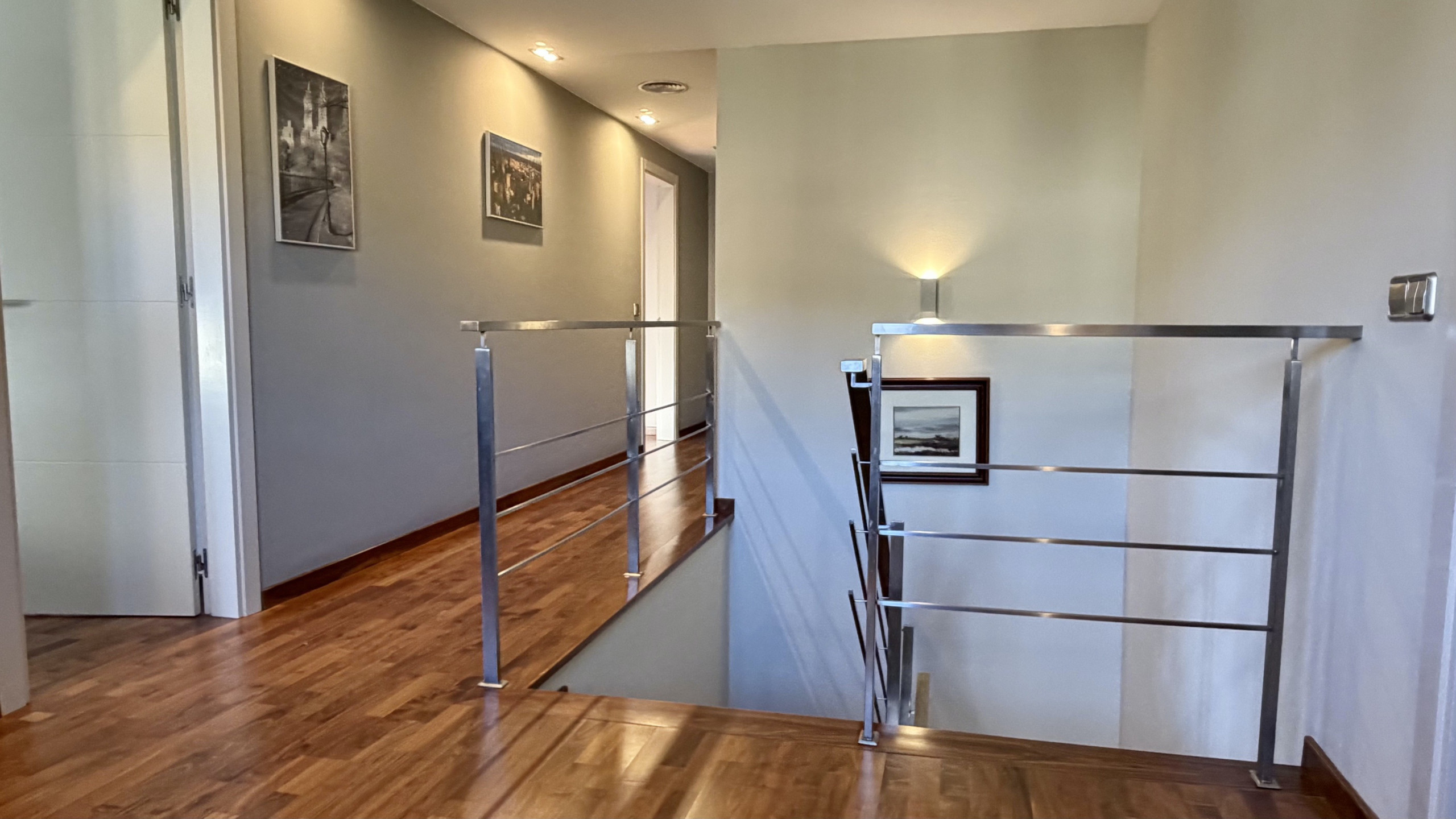 Onder zijn kwaliteiten springen de hoogwaardige afwerkingen in het oog: gres- en parketvloeren, ingebouwde kasten in alle kamers, kozijnen met dubbel Climalit-glas, automatische rolluiken, stadsgas verwarming, airconditioning met warmtepomp, centrale stofzuiging en een automatische garagedeur. Elk detail is zorgvuldig geselecteerd om welzijn, efficiëntie en een hoge levenskwaliteit te bieden.