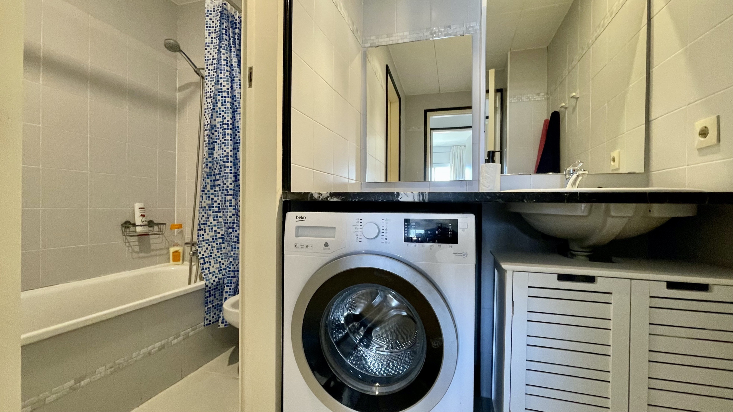The apartment is equipped with all the amenities you need. It features an elevator for easy access, a pleasant terrace where you can relax and enjoy the views, and a television for additional entertainment. The open-plan kitchen is equipped with appliances such as a fridge, oven, washing machine, dishwasher, as well as crockery, cutlery, kitchen utensils, and a coffee maker. You can access the internet provided by the agency, according to availability (for 10€/day).