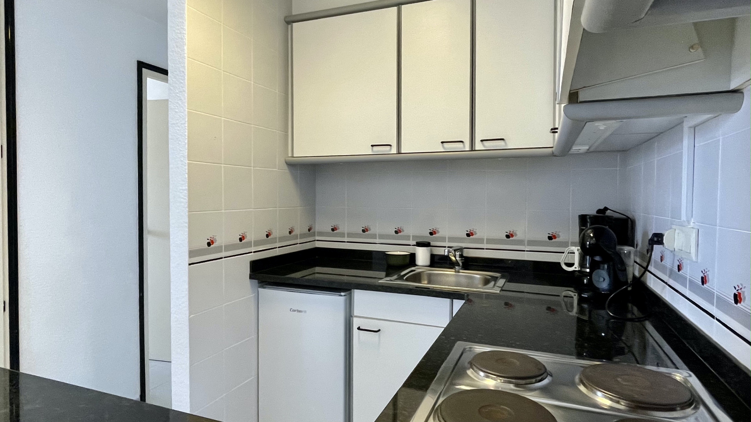 In the Rocamaura complex, this 1-bedroom apartment is available for vacation rental, featuring a double bunk bed and a single bed, accommodating up to 3 people. It includes a living-dining room with a sofa and TV, a small independent kitchen, and a bathroom with a shower.