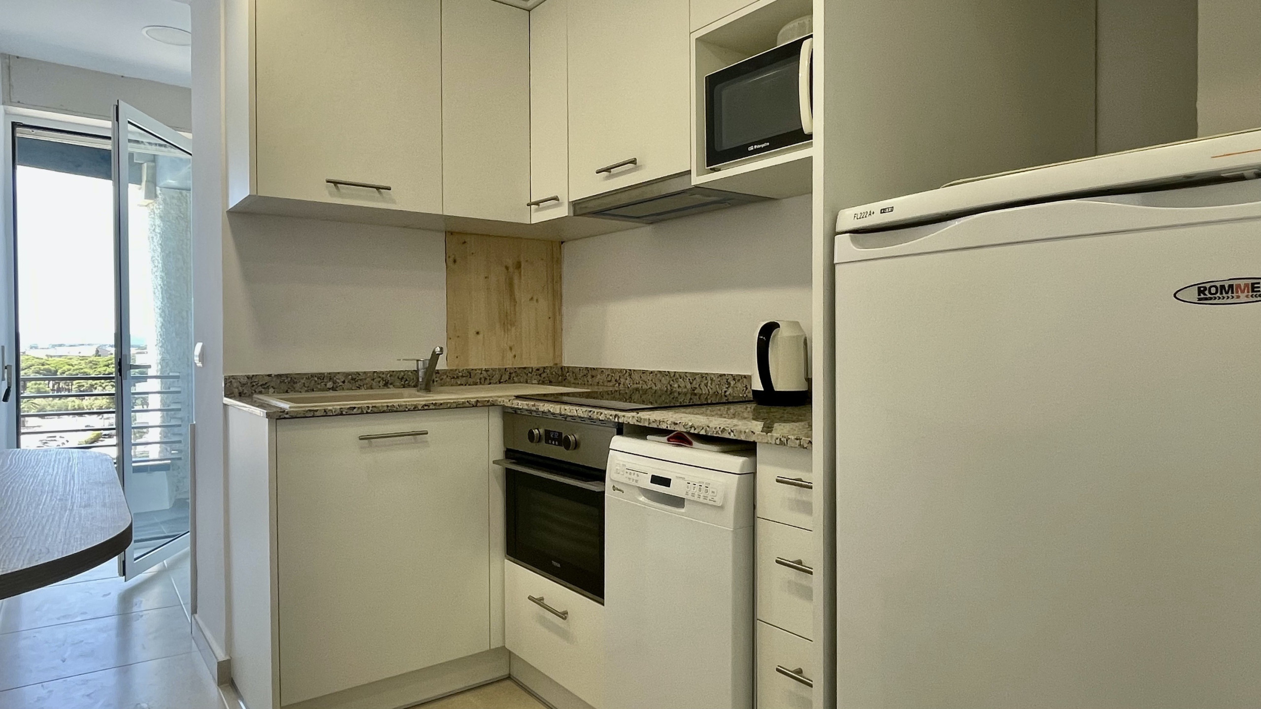 Bed sheets are included in the accommodation, and if bath towels are needed, they are available for an additional charge of 5 euros per person. The open kitchen, equipped with modern appliances such as a fridge, microwave, oven, freezer, washing machine, dishwasher, as well as complete utensils and tableware, provides all necessary amenities. Additionally, it includes a coffee maker, toaster, and juicer to meet guests' culinary needs.