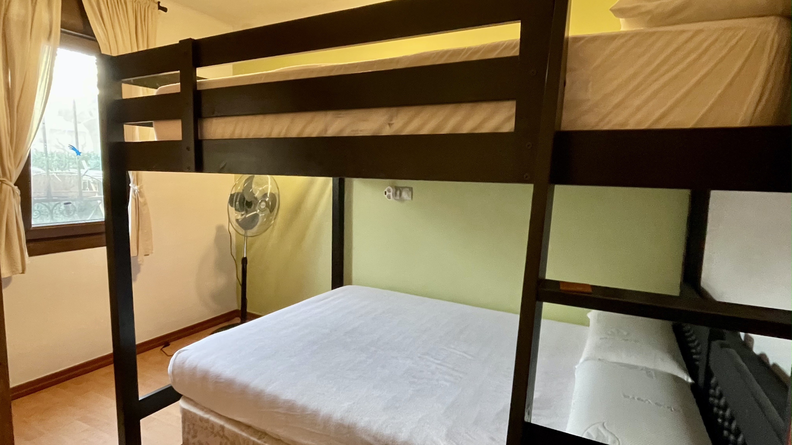 In the Rocamaura complex, this 1-bedroom apartment is available for vacation rental, featuring a double bunk bed and a single bed, accommodating up to 3 people. It includes a living-dining room with a sofa and TV, a small independent kitchen, and a bathroom with a shower.