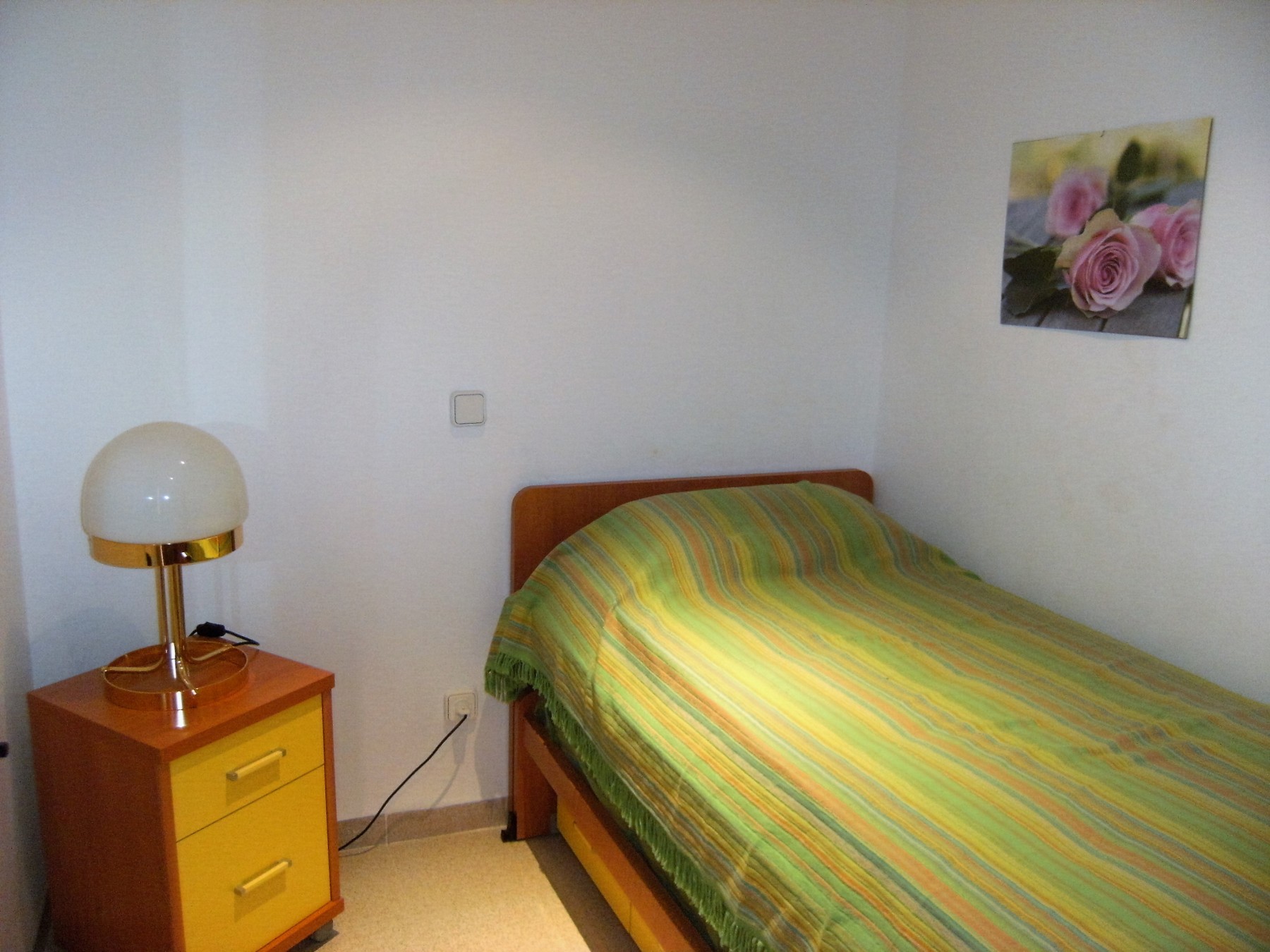 In the Rocamaura complex, this 1-bedroom apartment is available for vacation rental, featuring a double bunk bed and a single bed, accommodating up to 3 people. It includes a living-dining room with a sofa and TV, a small independent kitchen, and a bathroom with a shower.