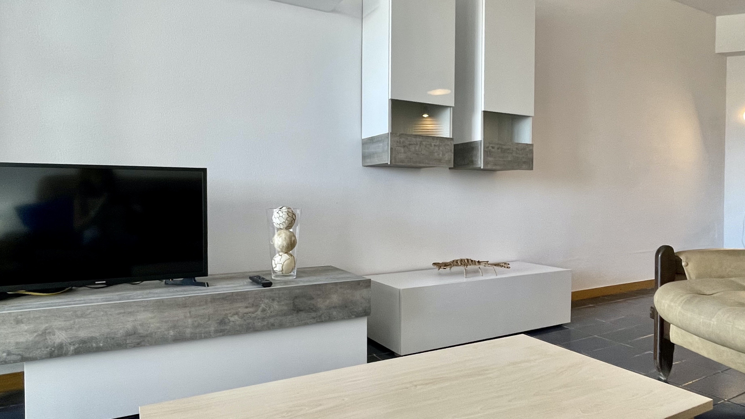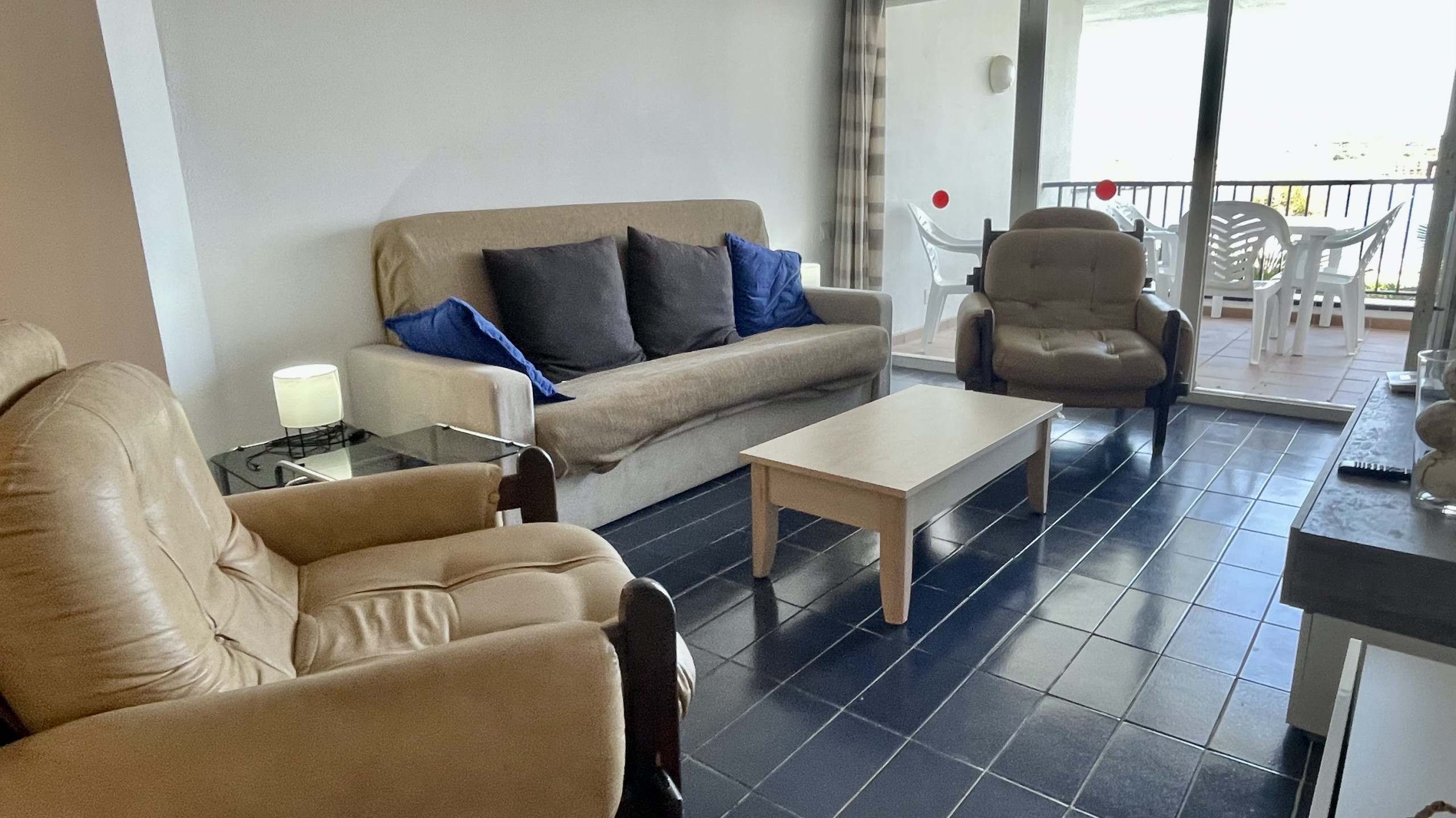 The apartment has two bedrooms equipped with three beds: a bunk bed, a double bed and a sofa bed, ensuring comfortable rest for all guests. It has a single bathroom with a bathtub, ideal for relaxing after a day at the beach.
