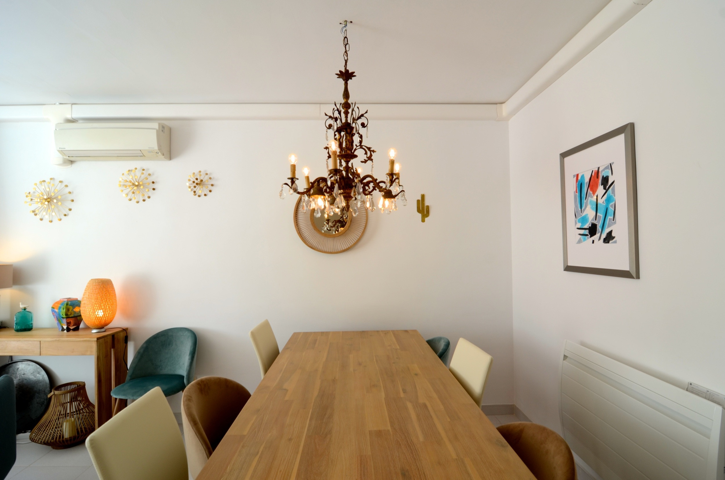 This apartment has a lovely communal area with swimming pool and garden and parking for one car. The interior is delicately decorated and has all the necessary comfort for a great holiday.