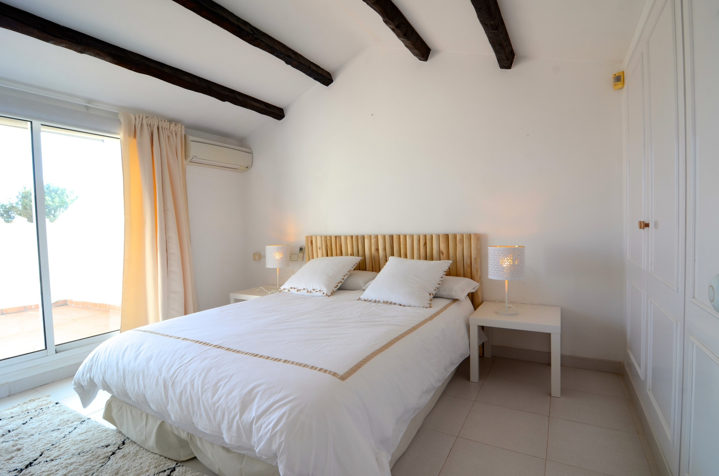 By some stairs we access the upper level of the duplex where we find the main bedroom with a large bathroom with bathtub and shower and a terrace with total privacy.