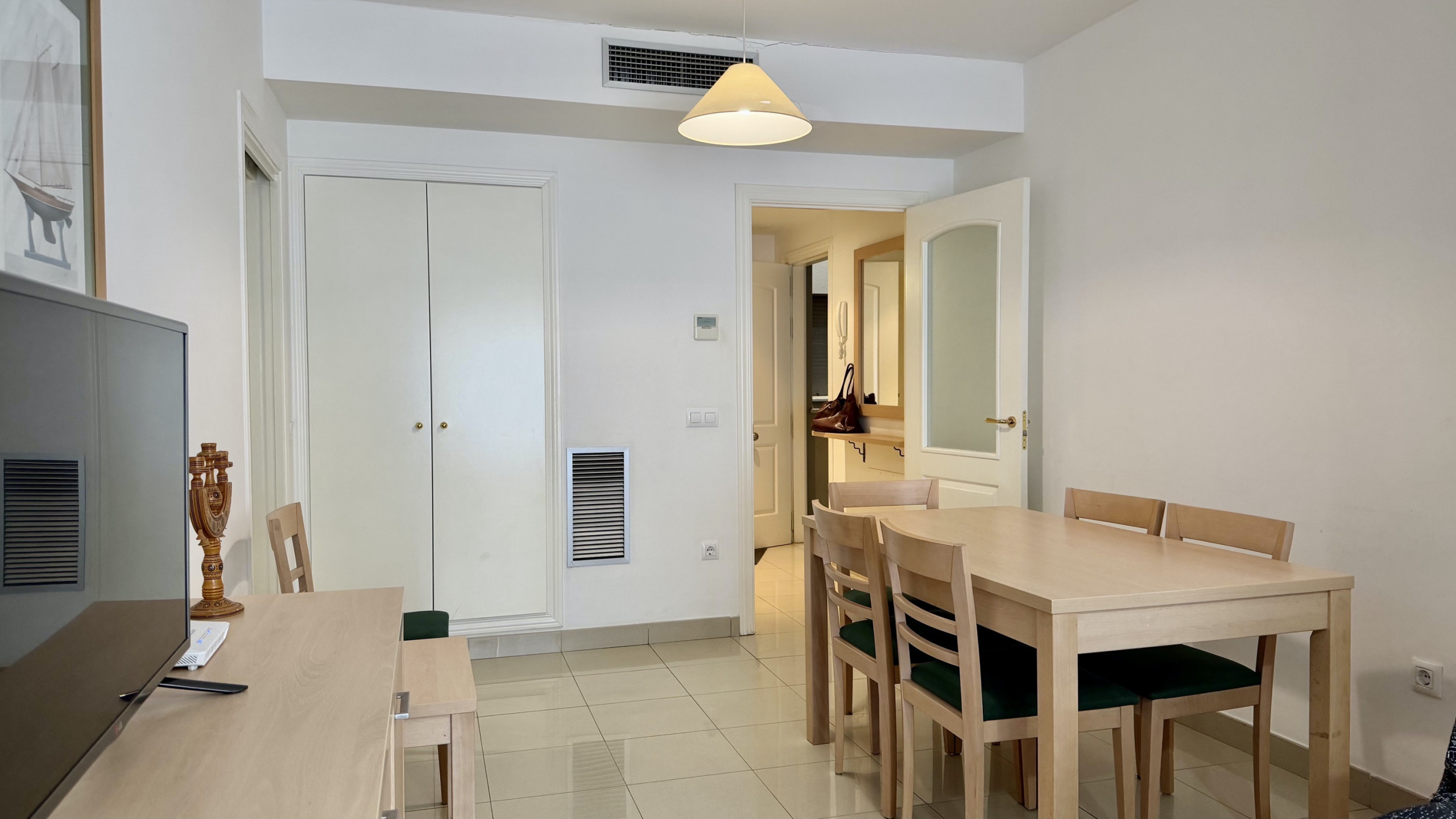 Discover the charm of MESTRAL 1.4, a cozy apartment located in the heart of L'Escala that offers a perfect experience for groups of up to 6 people. This bright 60-square-meter space is fully equipped to ensure a comfortable and relaxing stay.The apartment has two bedrooms that include a double bed, a double sofa bed and two single beds, ideal for families or groups of friends. It has a bathroom with a bathtub, air conditioning and heat pump heating to keep you comfortable at any time of the year.The independent kitchen is fully equipped with the latest generation appliances: ceramic hob, refrigerator, freezer, washing machine, dryer, oven, microwave, coffee maker, toaster and complete kitchenware. In addition, it has WiFi connection and television with satellite channels for your entertainment.Located in a well-connected area within the city, the apartment is just 250 meters from the sandy beach, 25 meters from the town center and 100 meters from a supermarket. The shared pool adds an extra touch of fun to your stay. It has a covered parking space in the same building, facilitating your mobility.Pets or groups of young people are not allowed.