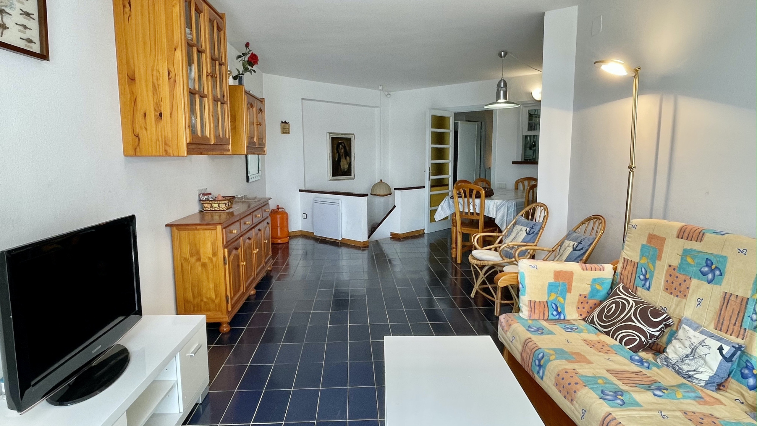 Discover the beauty of the coast of l'Escala from this duplex apartment located on the seafront. From its privileged location, you can enjoy breathtaking views of the Mediterranean and breathe in the sea breeze while relaxing on the terrace. Upstairs, you'll find the kitchen, a comfortable dining room, and a bright living room.