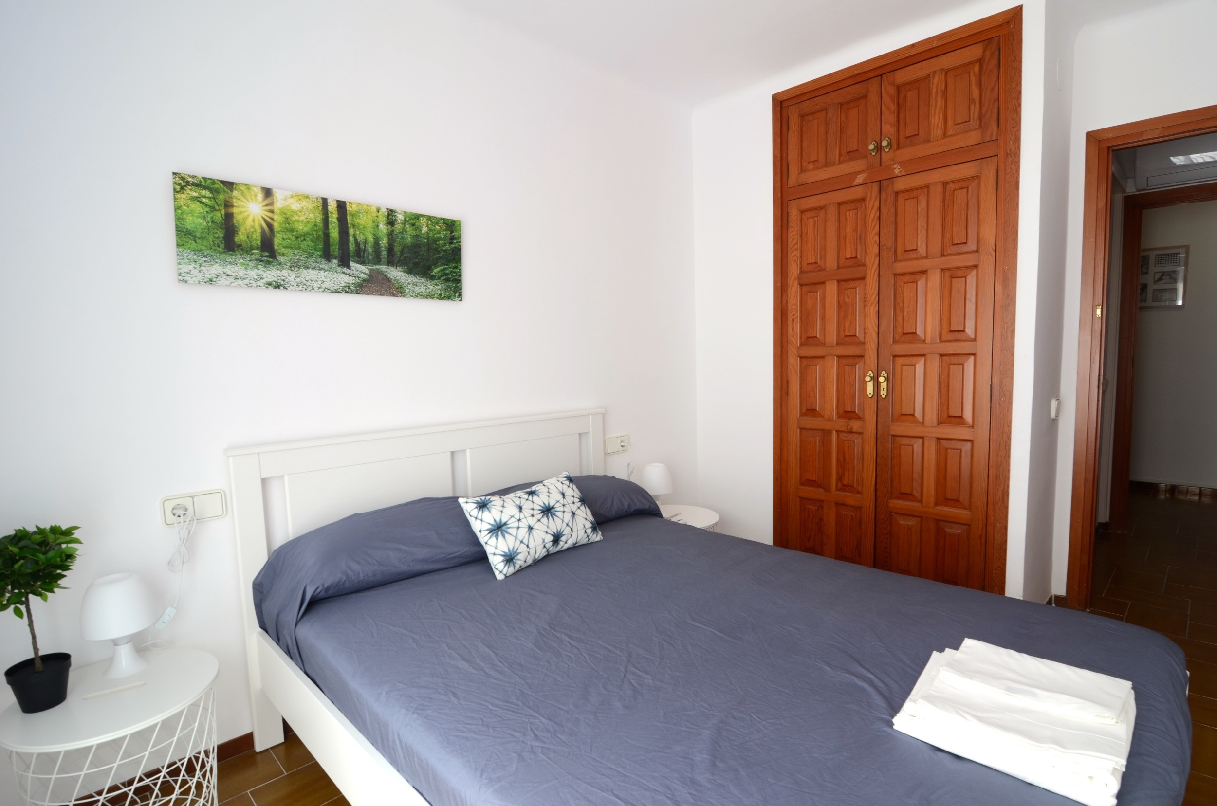 The apartment has 2 full bathrooms with a bathtub, ideal for relaxing after a day at the beach. The bedrooms include 2 double beds and 2 single beds, ensuring a comfortable rest for all guests. The living room is air conditioned to maintain a cool environment during the hottest days.