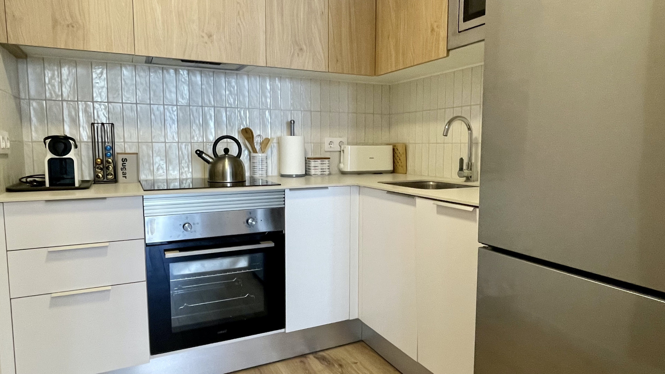 The apartment has a bedroom equipped with a bunk bed and a double sofa bed, ensuring a comfortable rest for all guests. The American kitchen is fully equipped with modern appliances such as a refrigerator, washing machine, oven, microwave, coffee machine, toaster and complete kitchenware, allowing you to prepare delicious meals during your stay.
