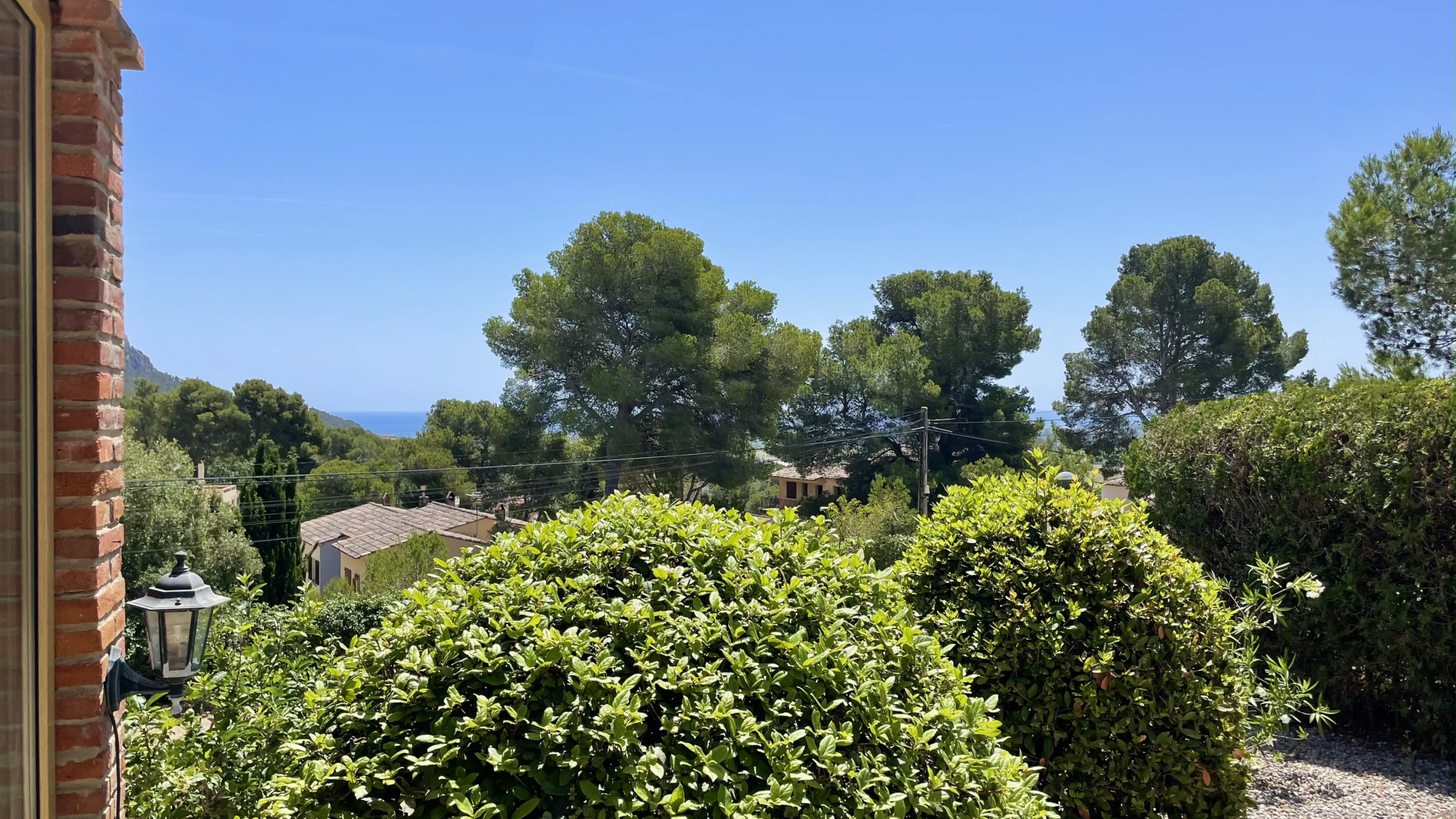 The exterior boasts a large terrace perfect for al fresco dining, a beautiful Mediterranean garden ideal for relaxation, garden furniture, and a fenced plot offering privacy and security. There is also outdoor parking available on the premises. For your convenience, the house comes equipped with a washing machine, iron, and a television.