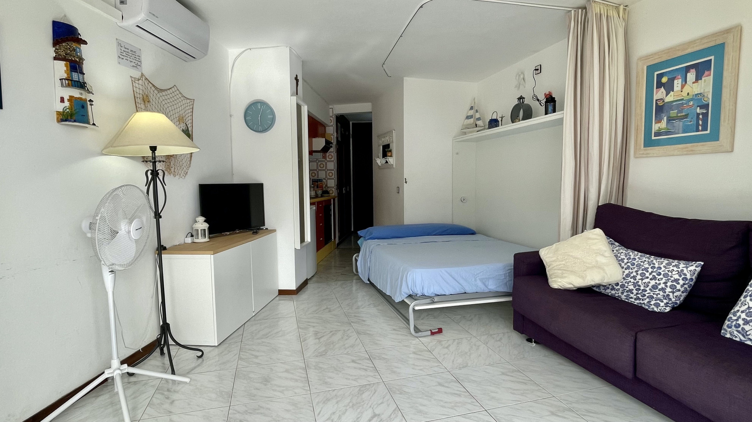 The studio is thoughtfully appointed with an elevator access, terrace with furniture, communal+infantile swimming pool surrounded by a green garden, TV.