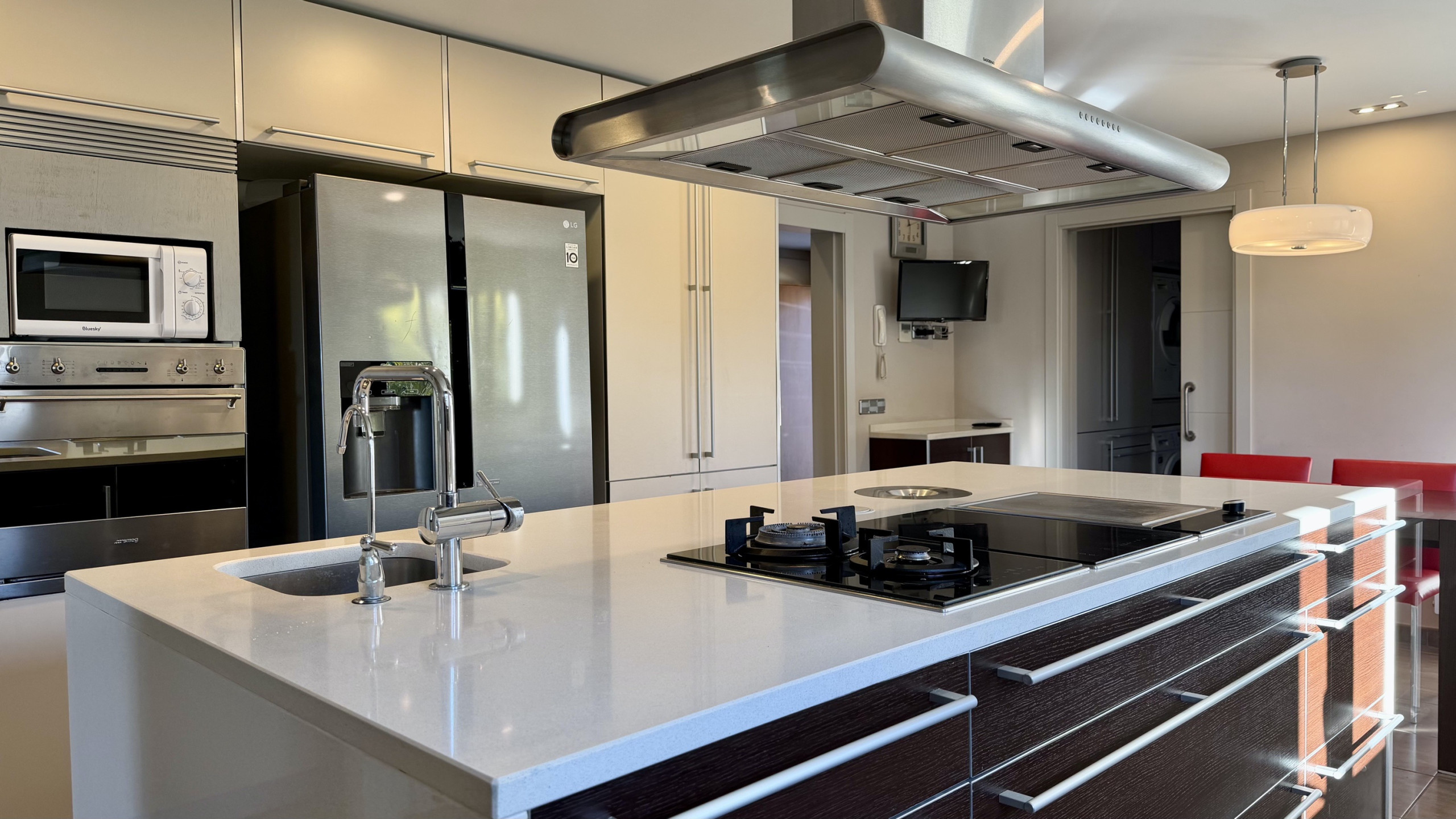 The upper floor houses the night area, composed of three bedrooms of generous dimensions, two of them en suite, in addition to an additional full bathroom. Spaces designed to guarantee privacy and maximum comfort for both family and guests.