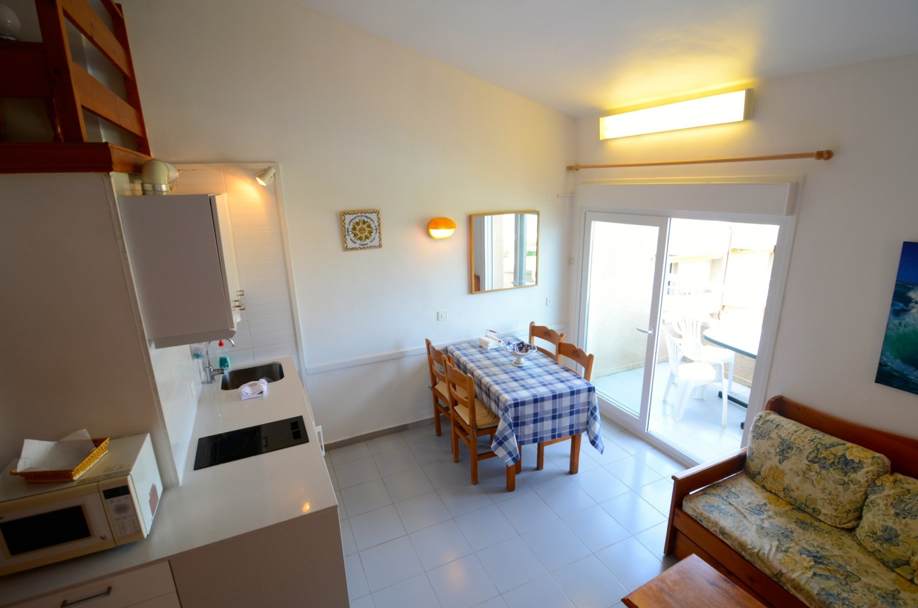 Dans le complexe Rocamaura, cet appartement d'une chambre est disponible à la location pour les vacances, avec un lit superposé double et un lit simple pouvant accueillir jusqu'à 3 personnes. Il comprend un salon-salle à manger avec un canapé et une télévision, une petite cuisine indépendante et une salle de bains avec douche.