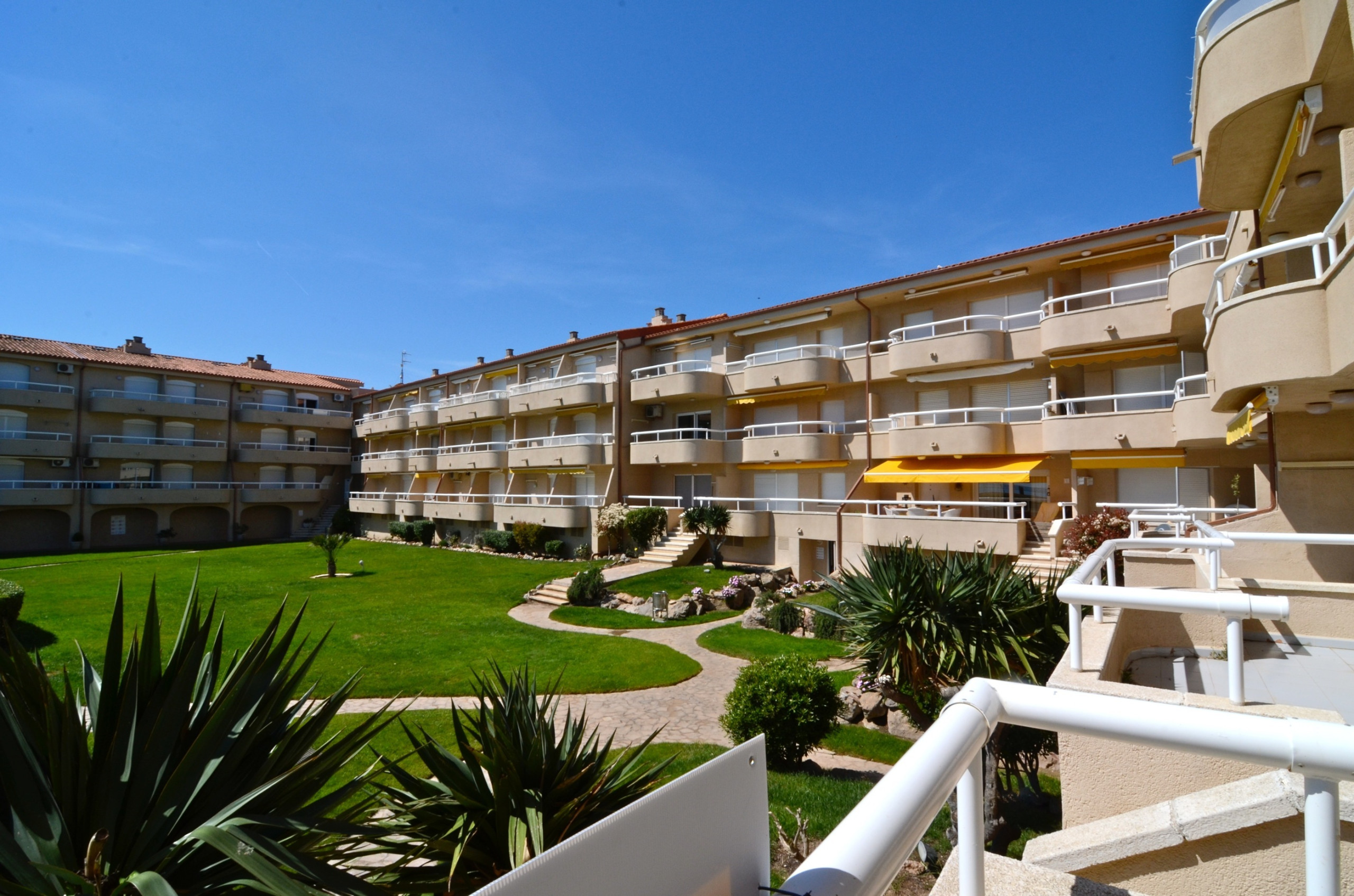 L'appartement dispose d'une grande terrasse avec une vue imprenable sur l'ensemble du complexe Rocamaura, avec la piscine à vos pieds et les îles Medes en arrière-plan.